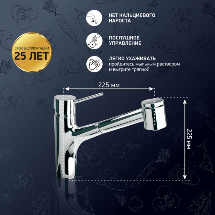 Смеситель для кухни PAINI Cox выдвижной излив, хром (CR) 78CR576LMKM