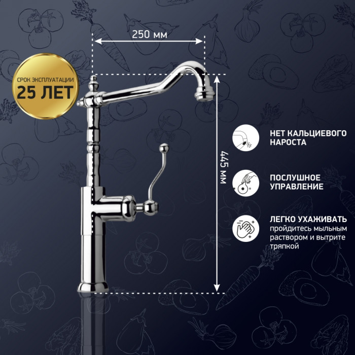Смеситель для кухни PAINI Duomo высокий, хром (CR) 88CR572LLKM смеситель для кухни Paini Италия