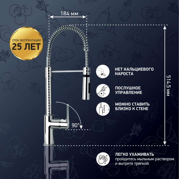 Смеситель для кухни PAINI Le Mans гибкий излив, хром (CR) 90CR557LLPE2SKM
