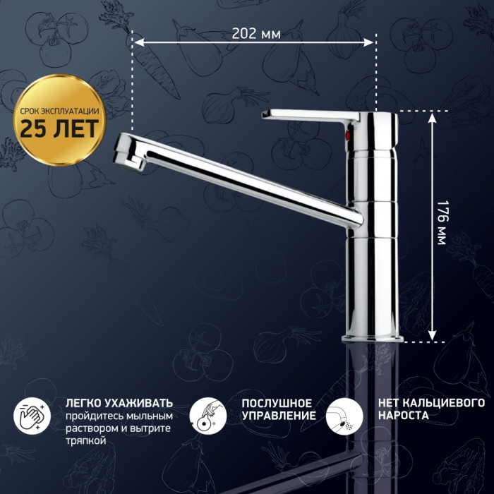 Размер чаши мойки впечатлил, очень удобно, исполнение отличное,цвет алюметаллик подошёл нам идеально, заказала такой же смеситель