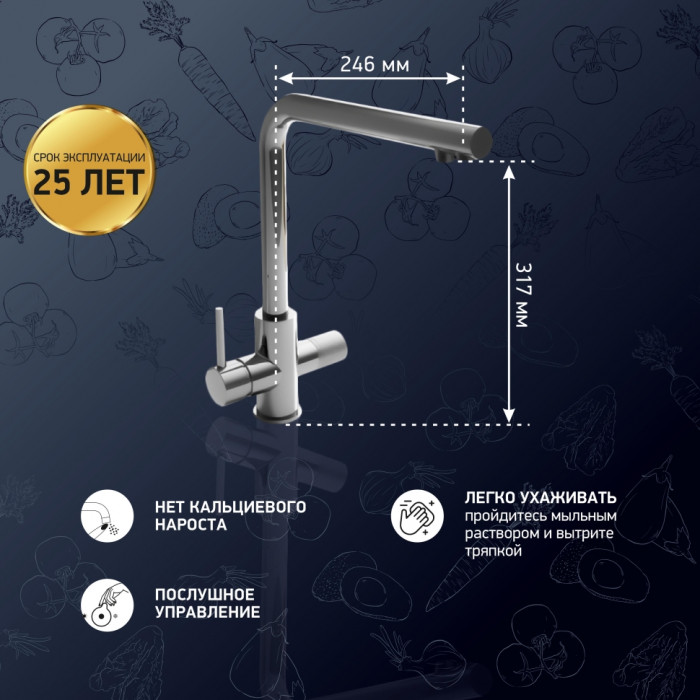 Размер чаши мойки впечатлил, очень удобно, исполнение отличное,цвет алюметаллик подошёл нам идеально, заказала такой же смеситель