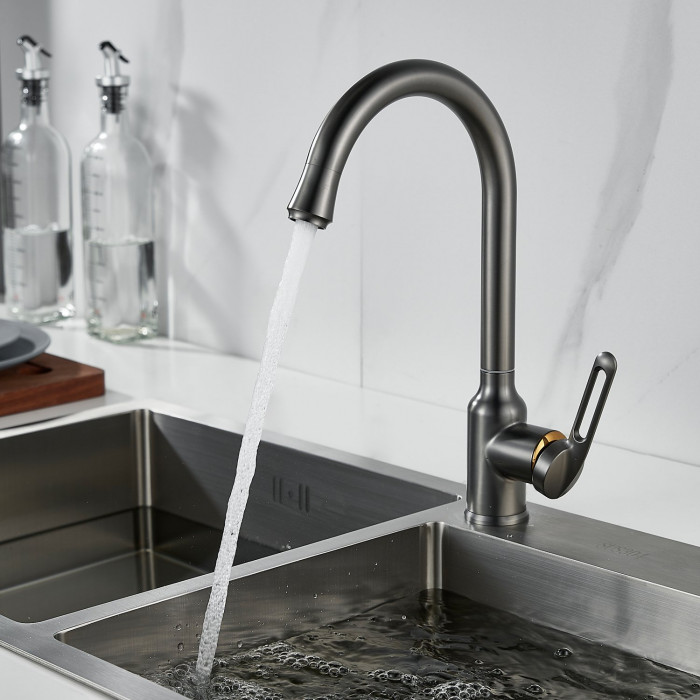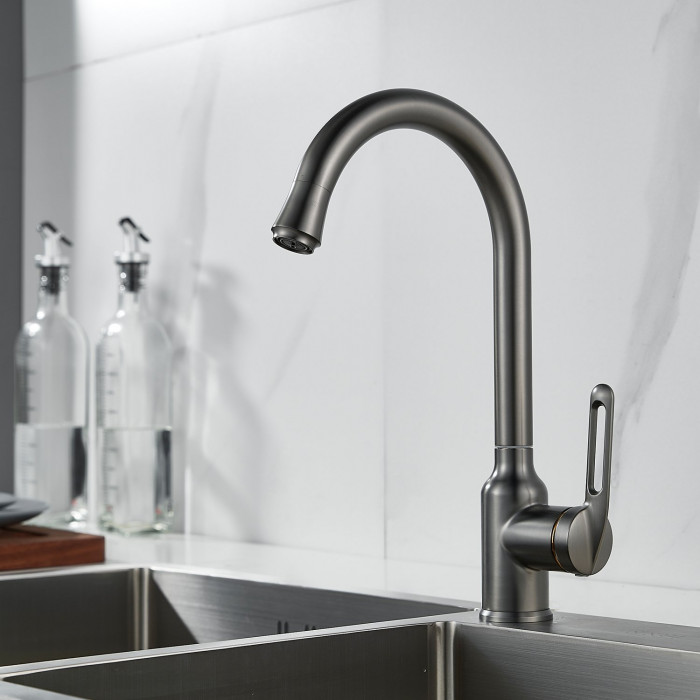 Смеситель для кухни Raffine F103T, оружейная сталь