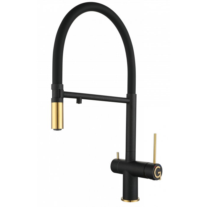 Смеситель для кухни Rivelato Adria U-обр. гибкий излив с краном питьевой воды D-35ммoro 1523517 nero oro