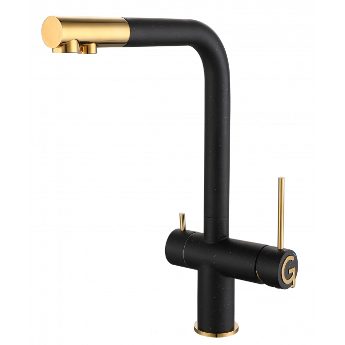 Смеситель для кухни Rivelato Lugano Г-обр. с краном питьевой воды D-35ммoro 1523513 nero oro