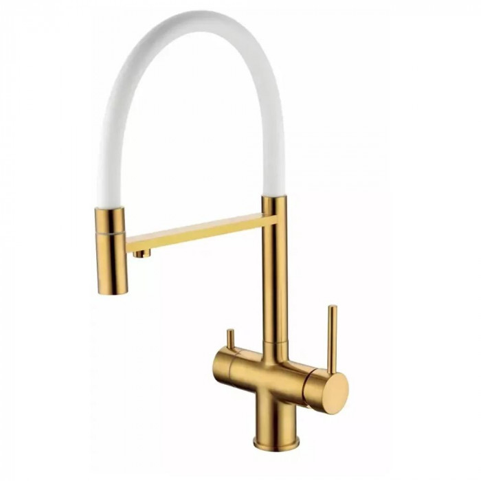 Смеситель для кухни с гибким изливом Grocenberg GB4099GL, брашированное золото