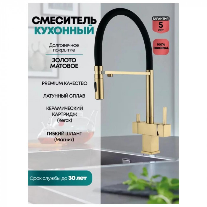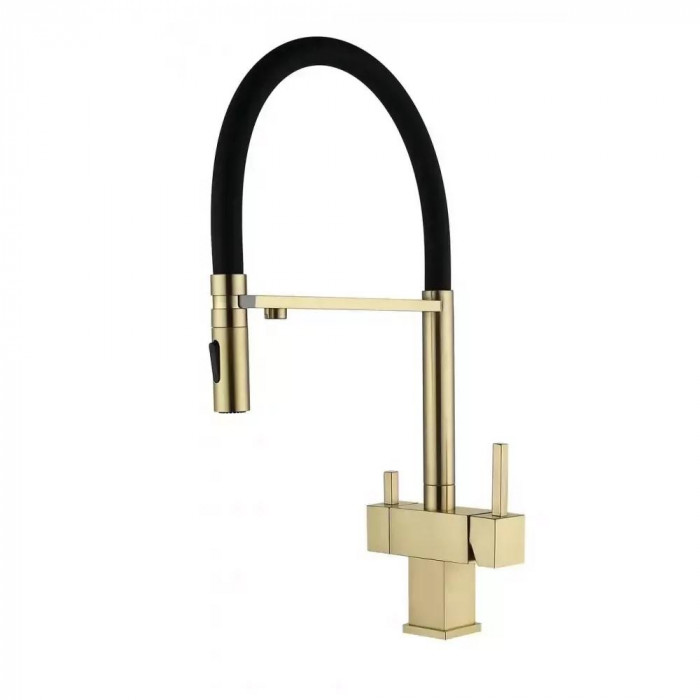 Смеситель для кухни с гибким изливом и подключением фильтра Grocenberg GB4098MG, матовое золото
