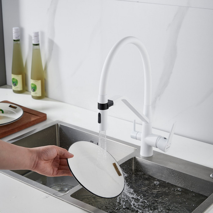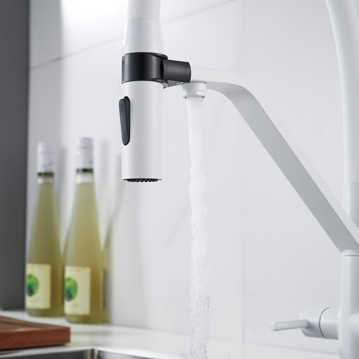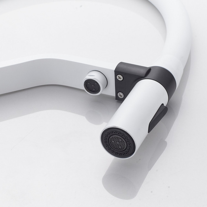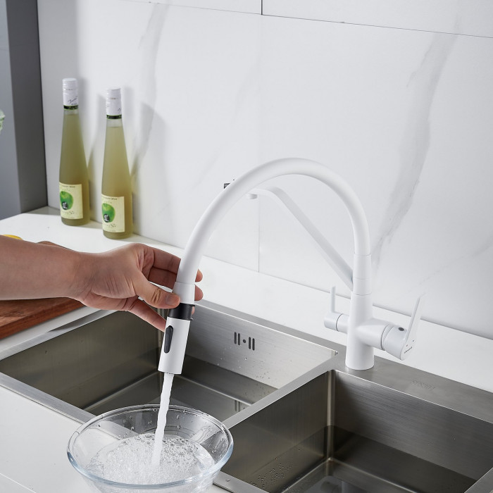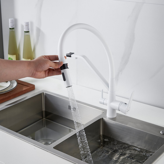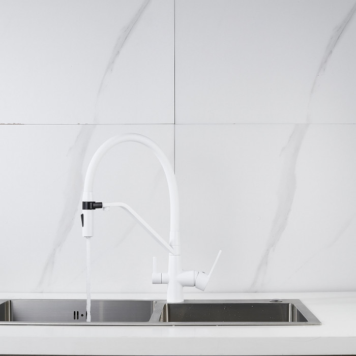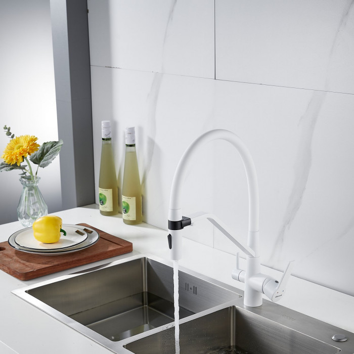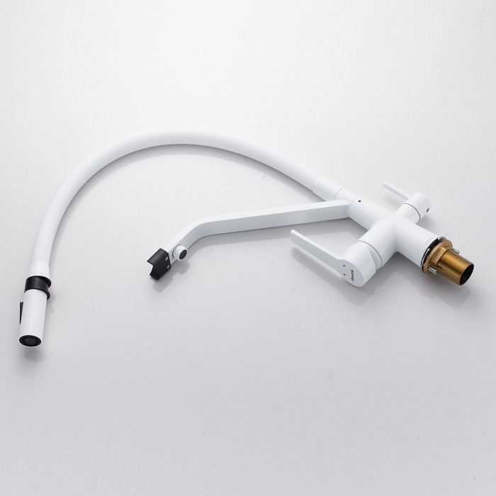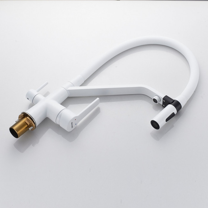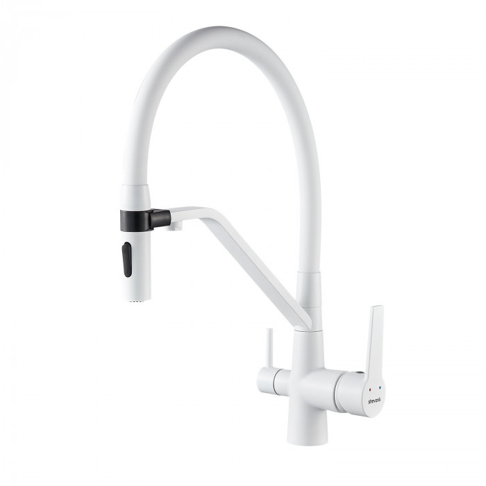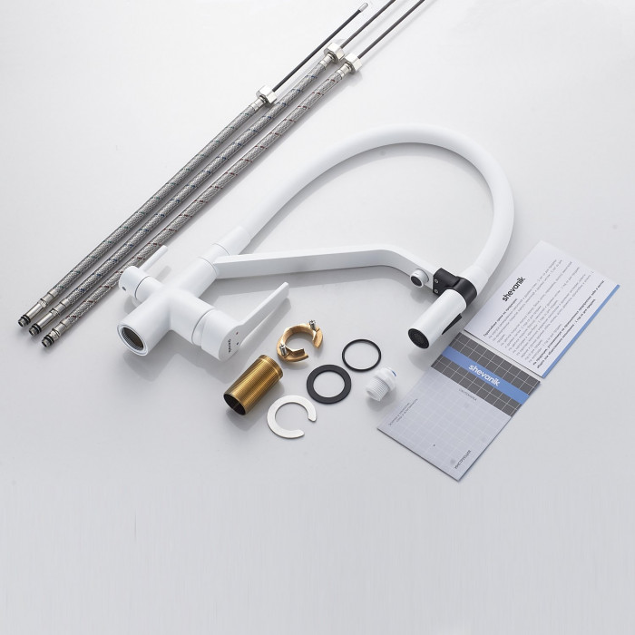 Смеситель для кухни с гибким изливом и подключением фильтра Shevanik S278C, белый