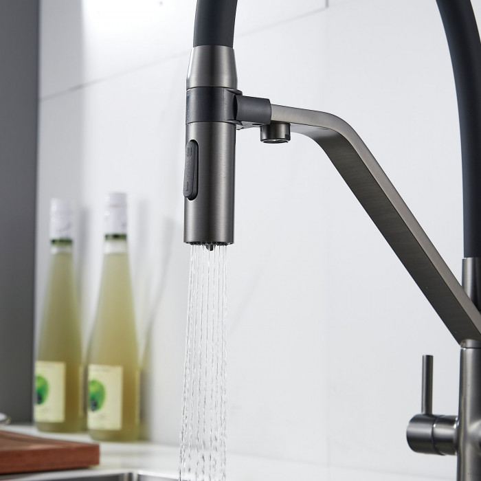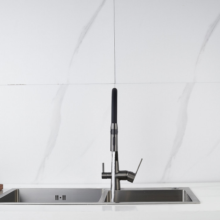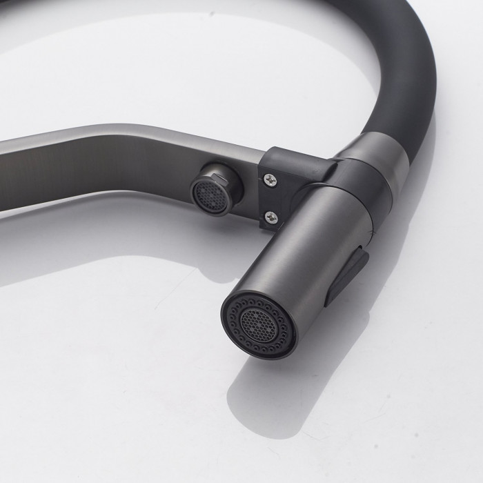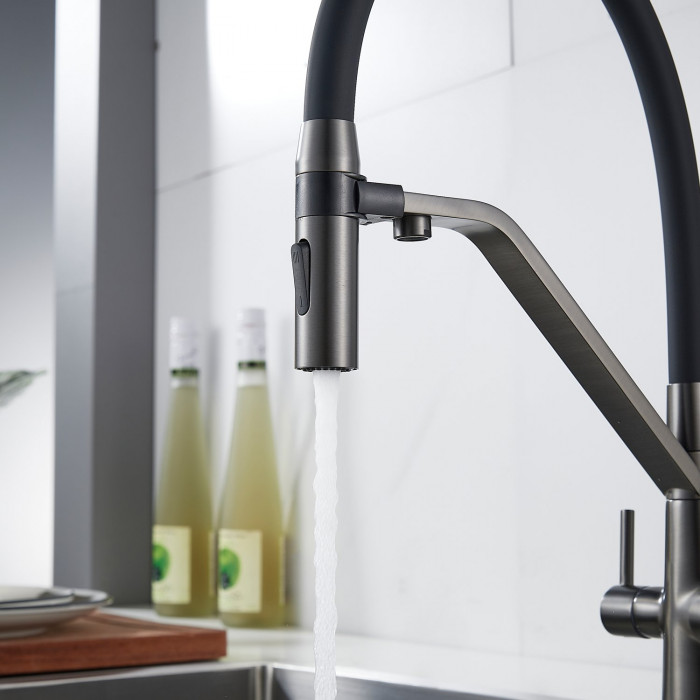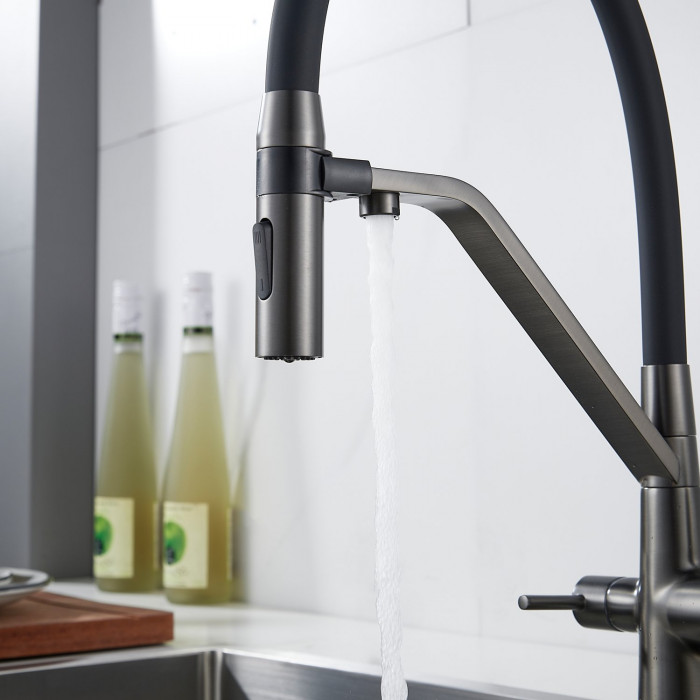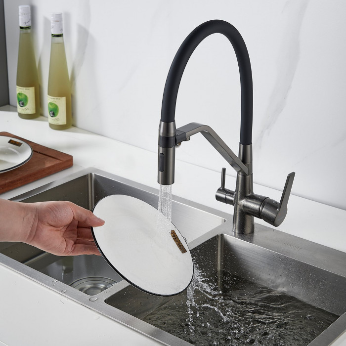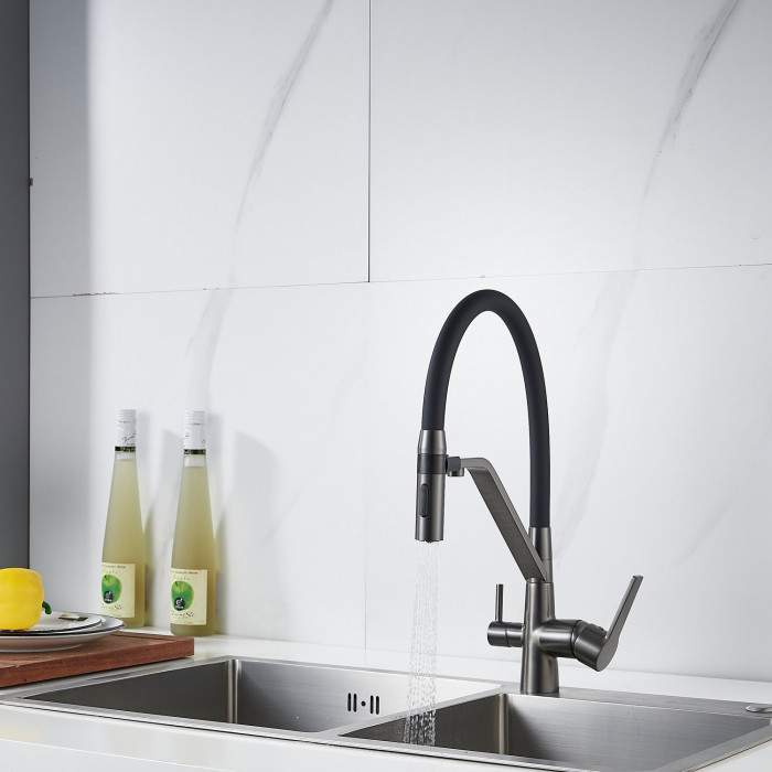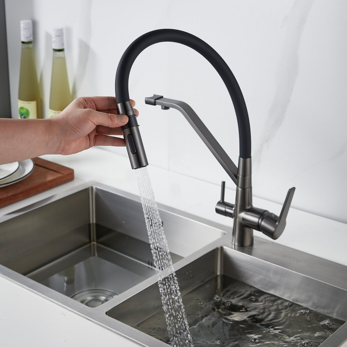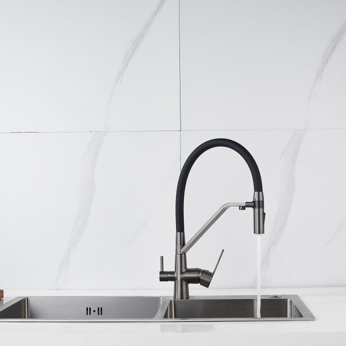 Смеситель для кухни с гибким изливом и подключением фильтра Shevanik S278T, оружейная сталь
