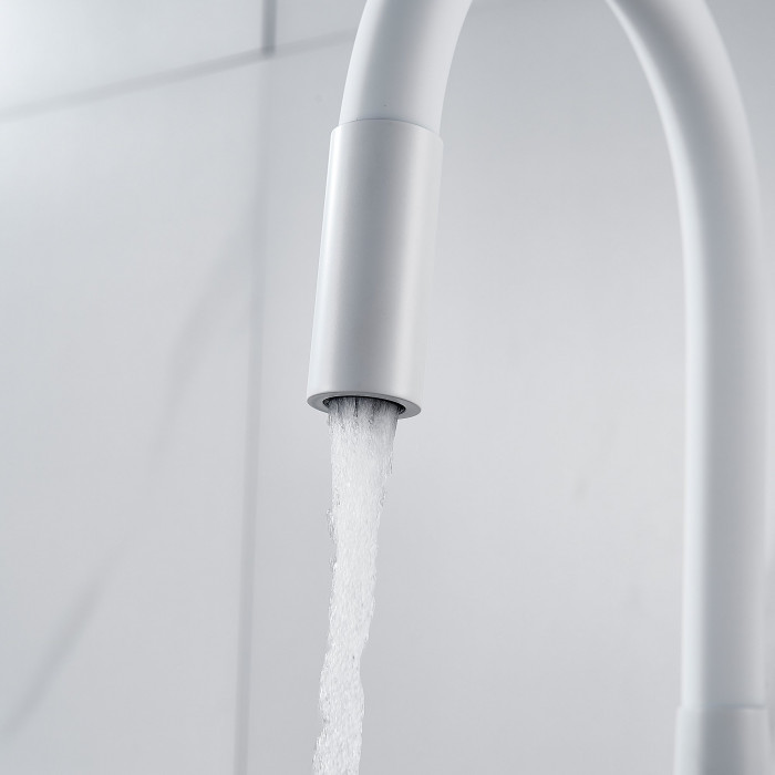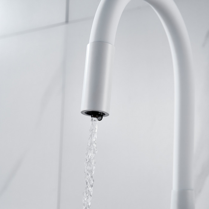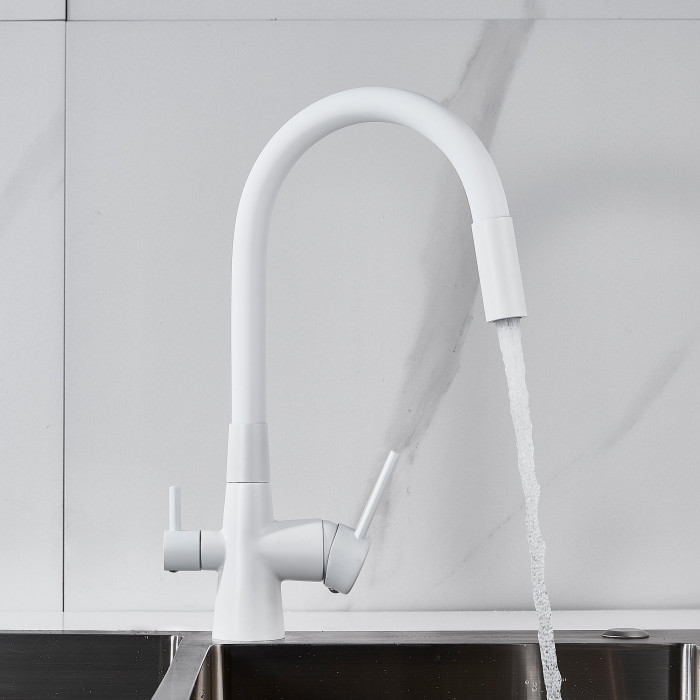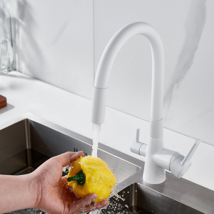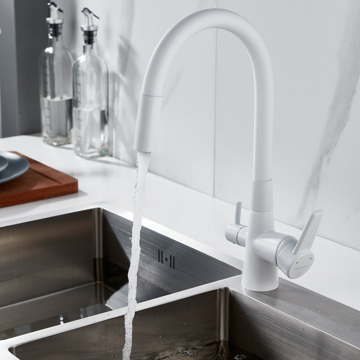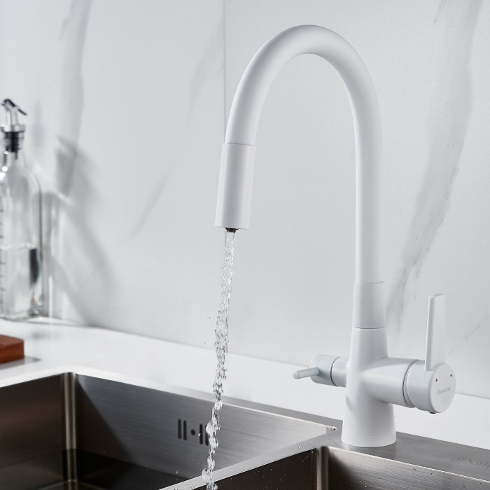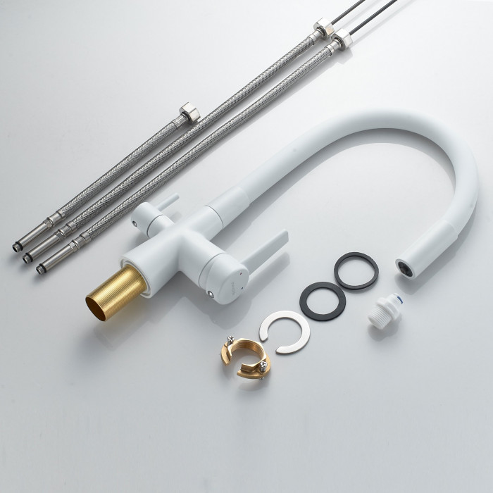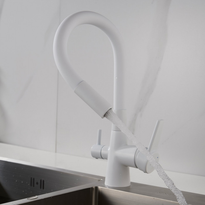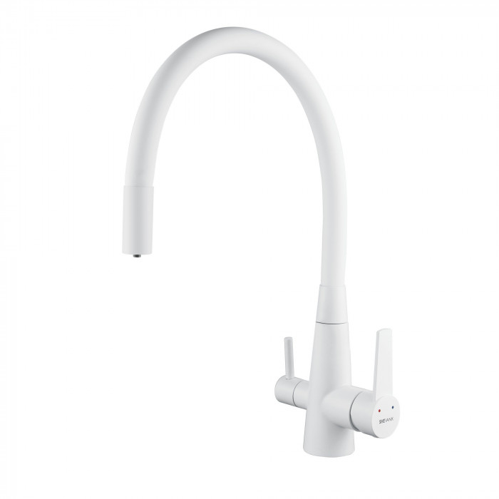 Смеситель для кухни с гибким изливом и подключением фильтра Shevanik S668C, белый