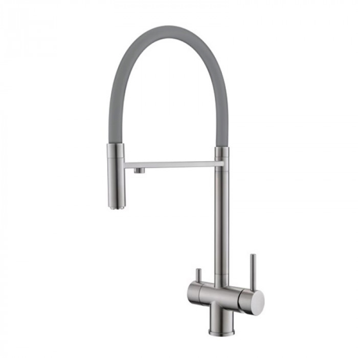 Смеситель для кухни с гибким изливом и подключением фильтра WesnaArt EKO05-161, сатин