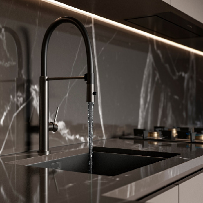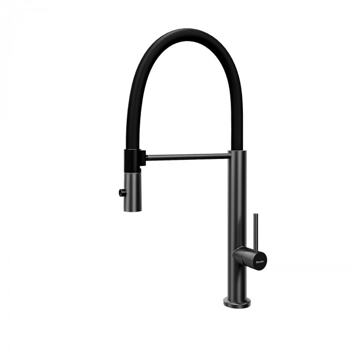 Смеситель для кухни с гибким изливом и режимом "душ" Knotlor SS-17/GM вороненая сталь матовый