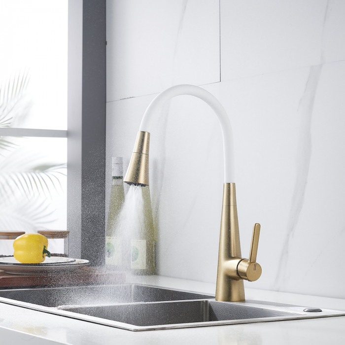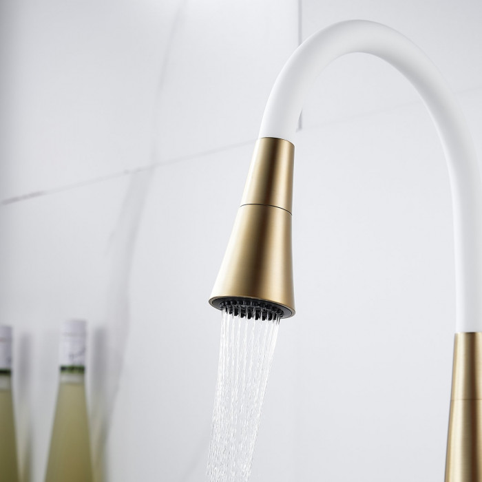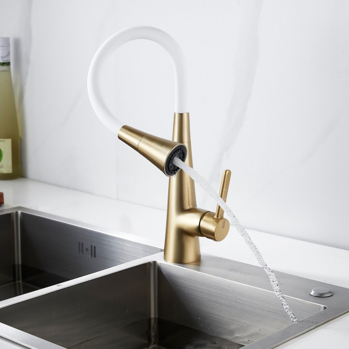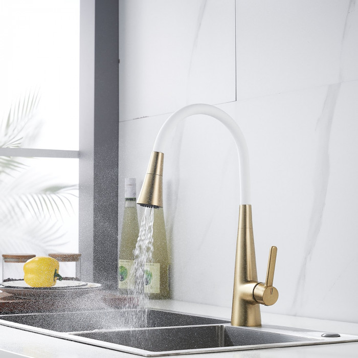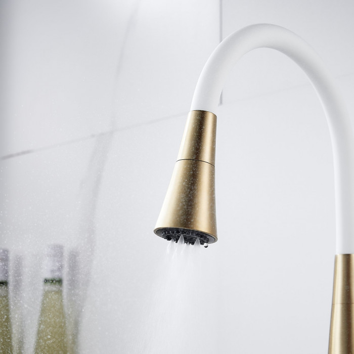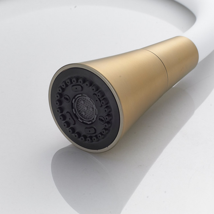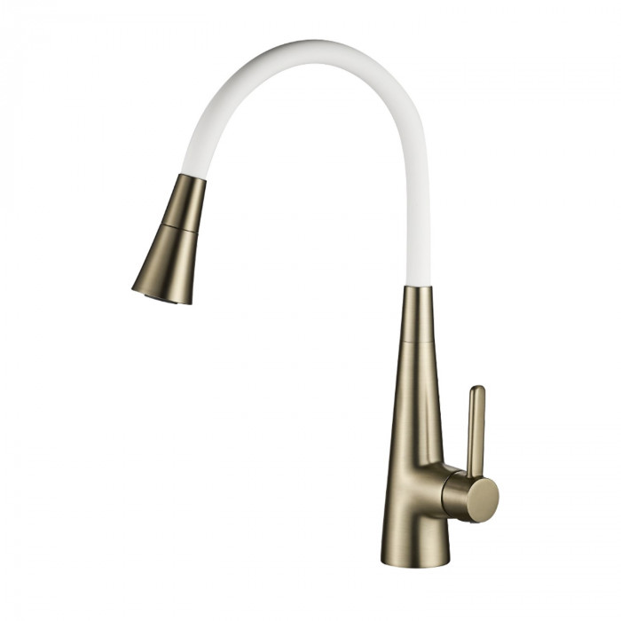 Смеситель для кухни с гибким изливом и режимом "душ" Rose R213G, золотой сатин