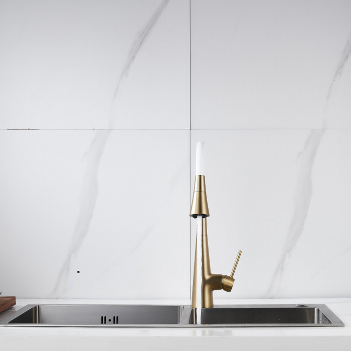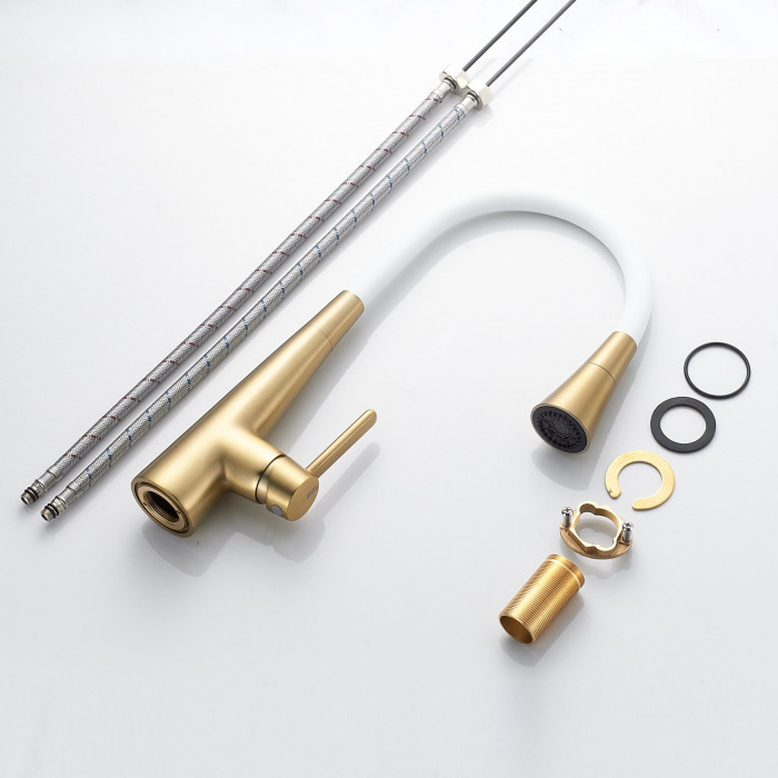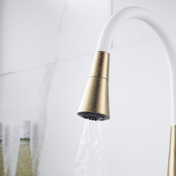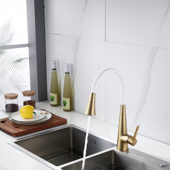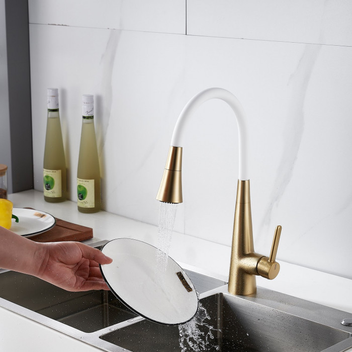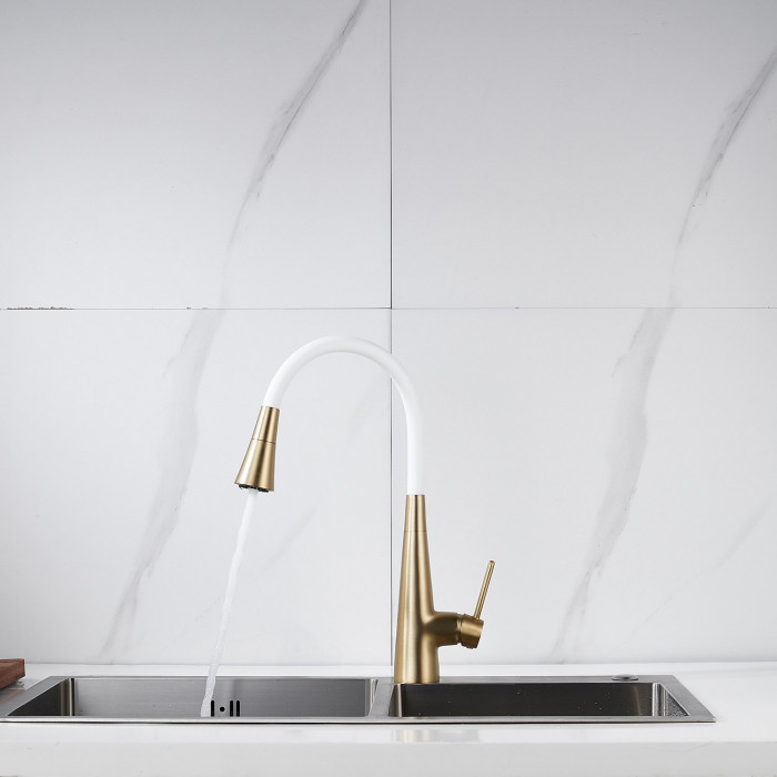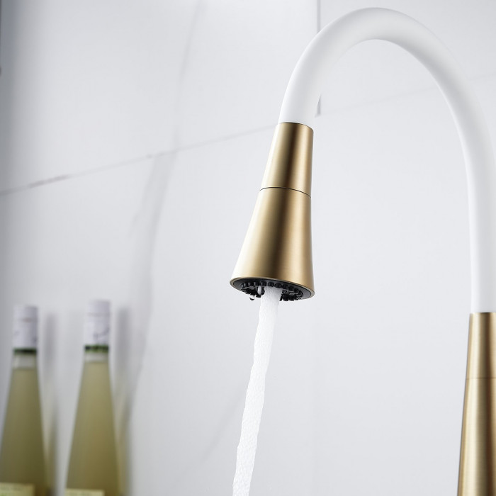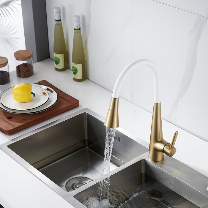 Смеситель для кухни с гибким изливом и режимом "душ" Rose R213G, золотой сатин