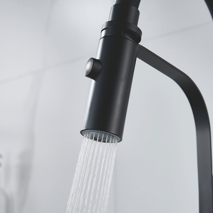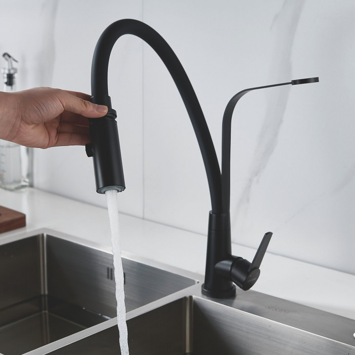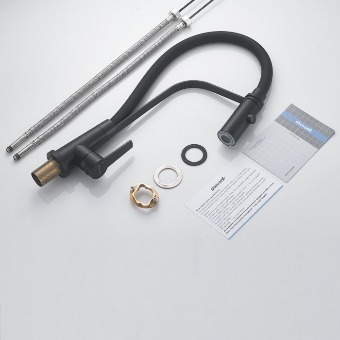 Смеситель для кухни с гибким изливом и режимом "душ" Shevanik S943H-3, черный