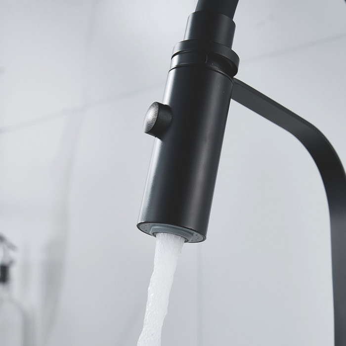 Выглядит стильно, матовый черный не маркий. Ход рычага плавный, напор регулируется точно. Из минусов - тяжёлый, пришлось аккуратно подтягивать крепеж.