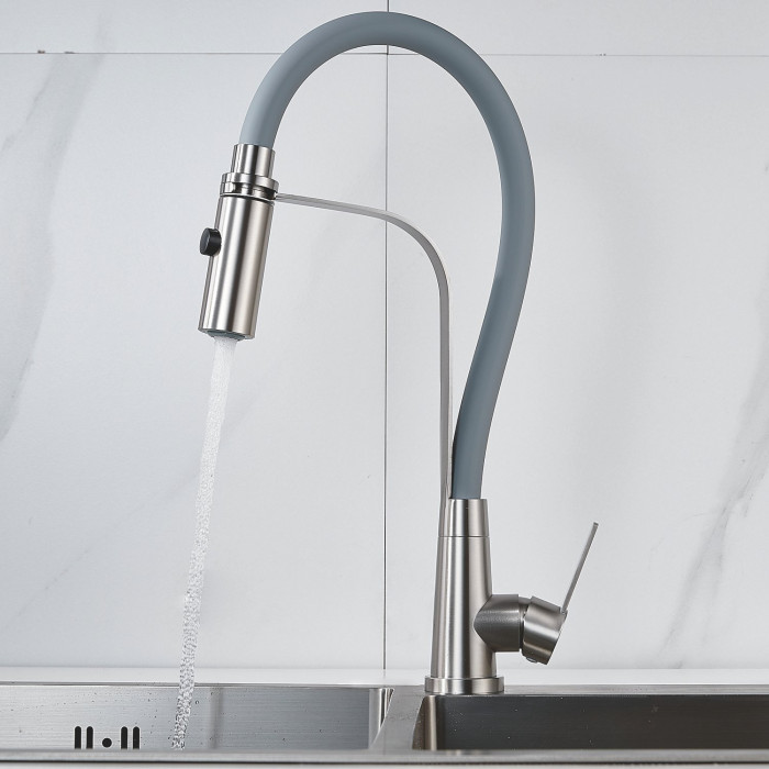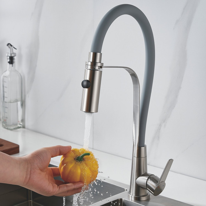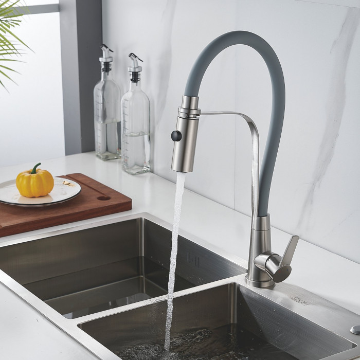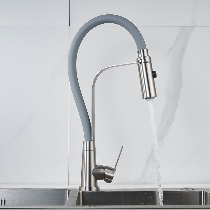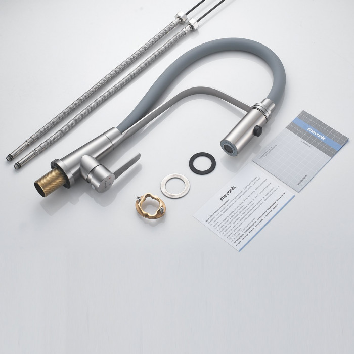 Смеситель для кухни с гибким изливом и режимом "душ" Shevanik S943L-9, сатин