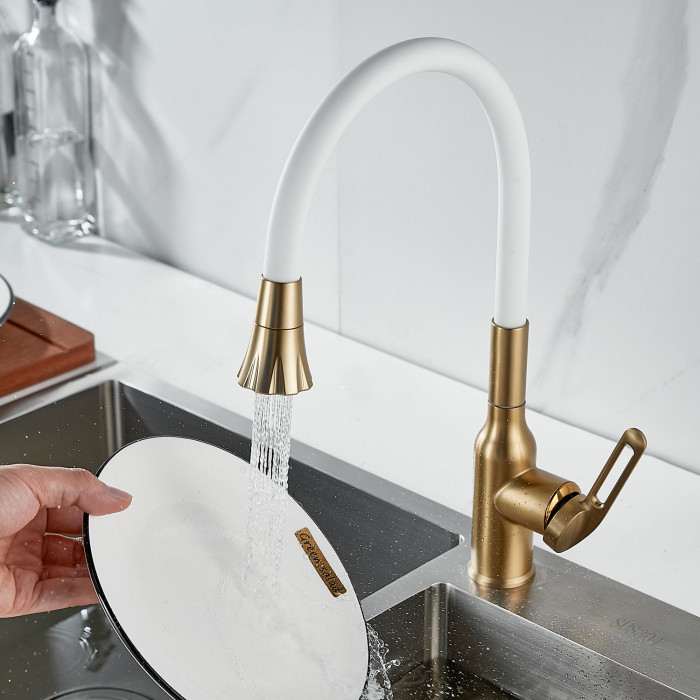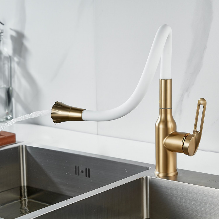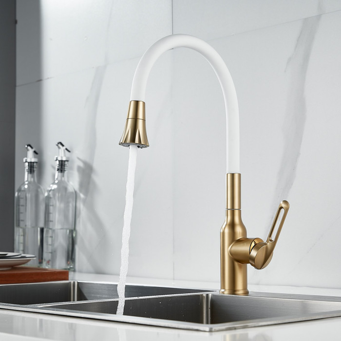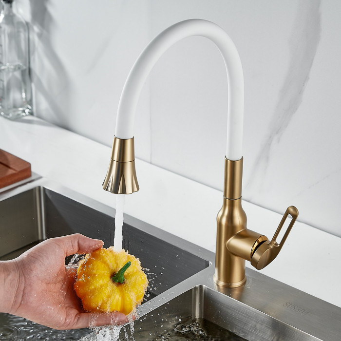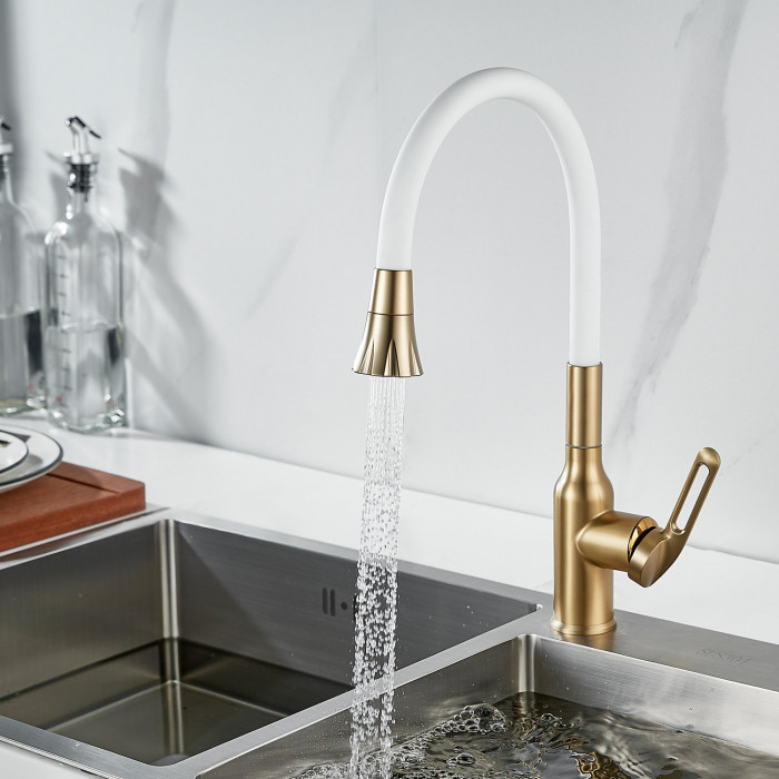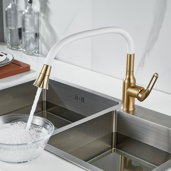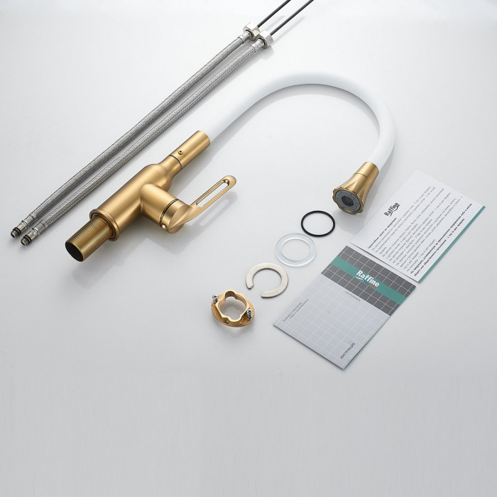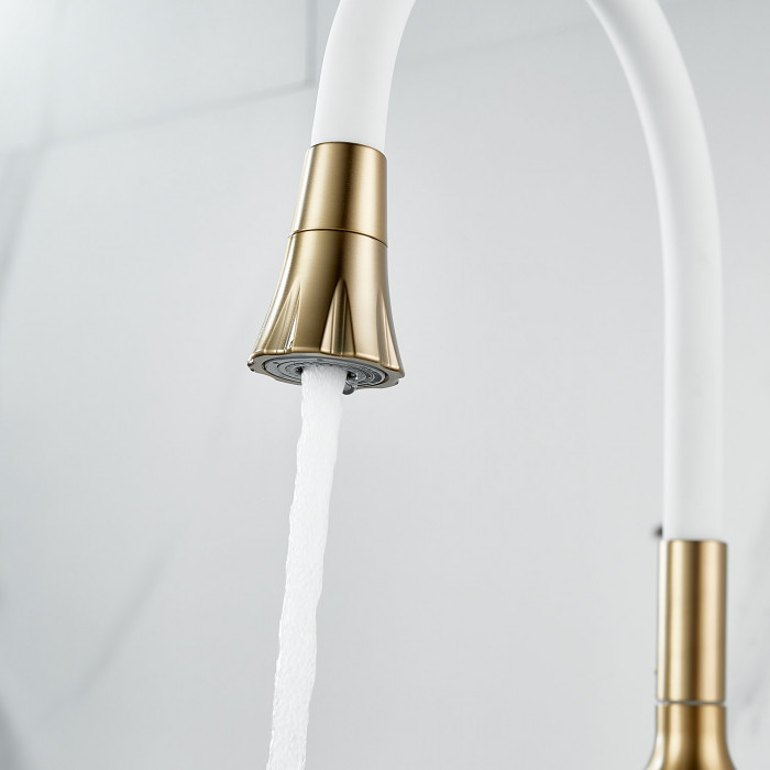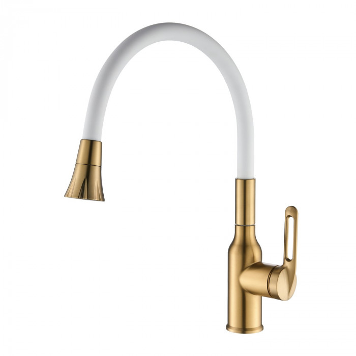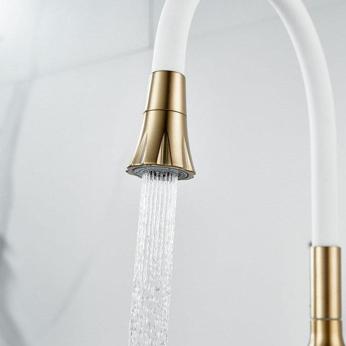 Смеситель для кухни с гибким изливом Raffine F303G-1, золотой сатин