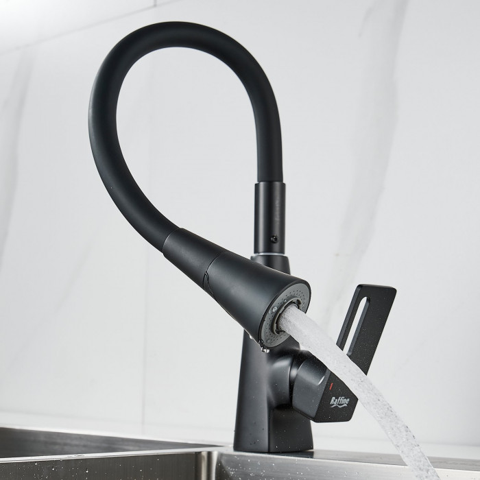 Смеситель для кухни с гибким изливом Raffine F313H-3, черный