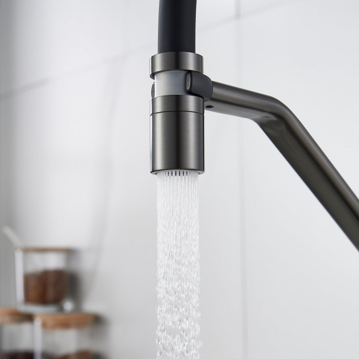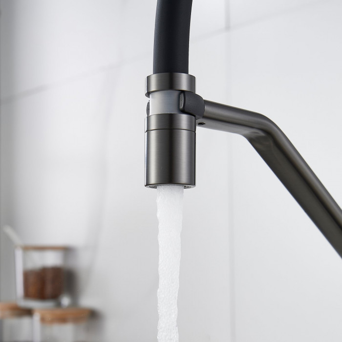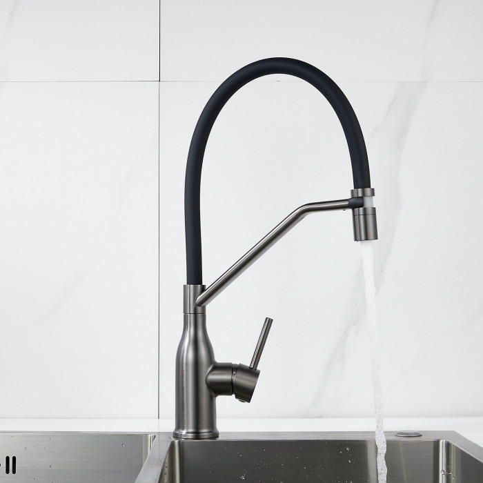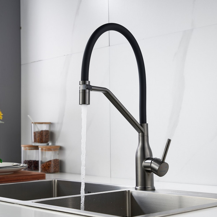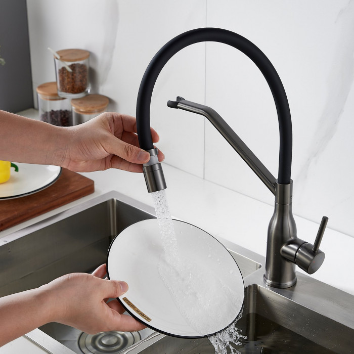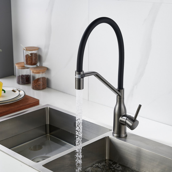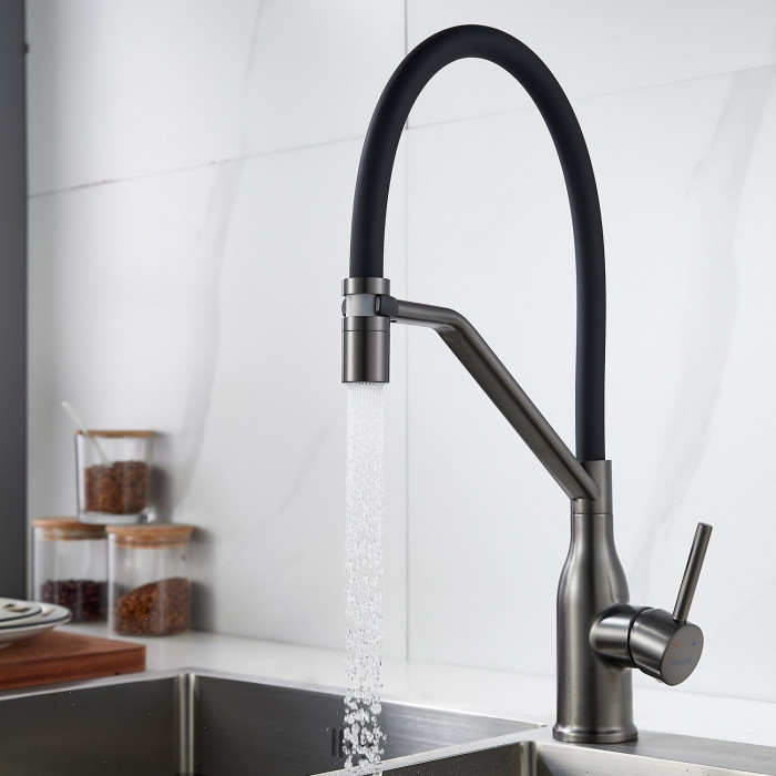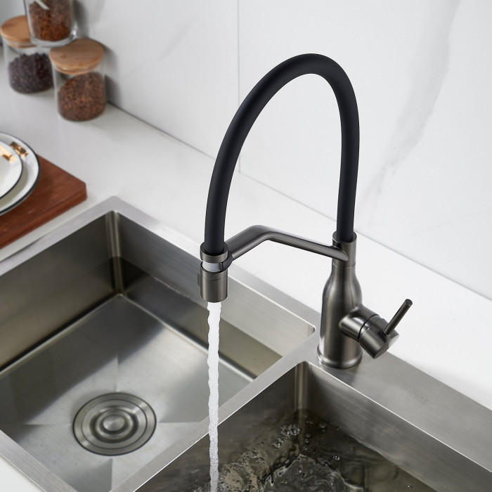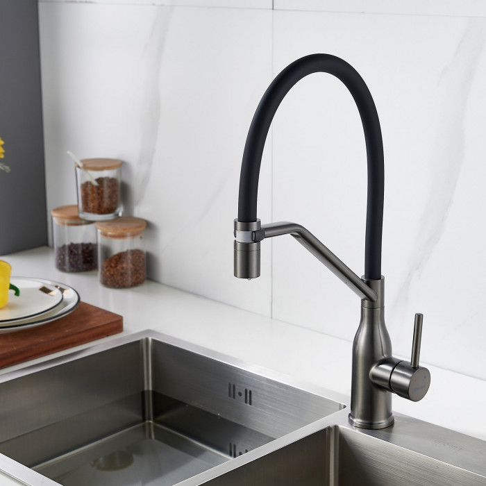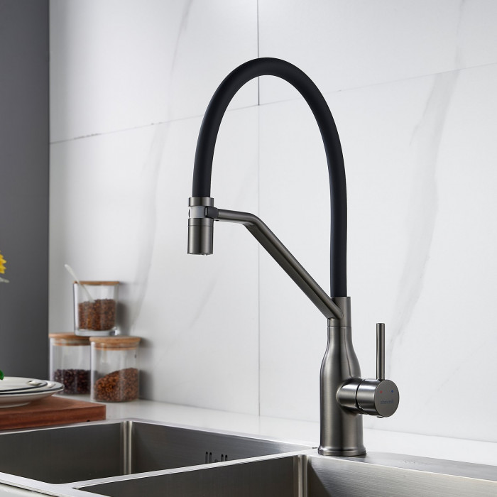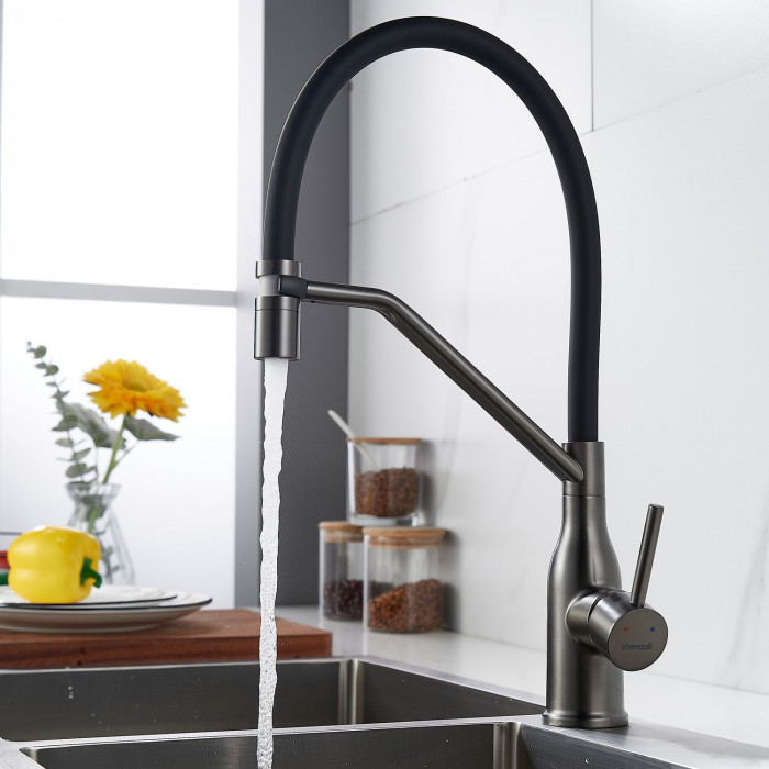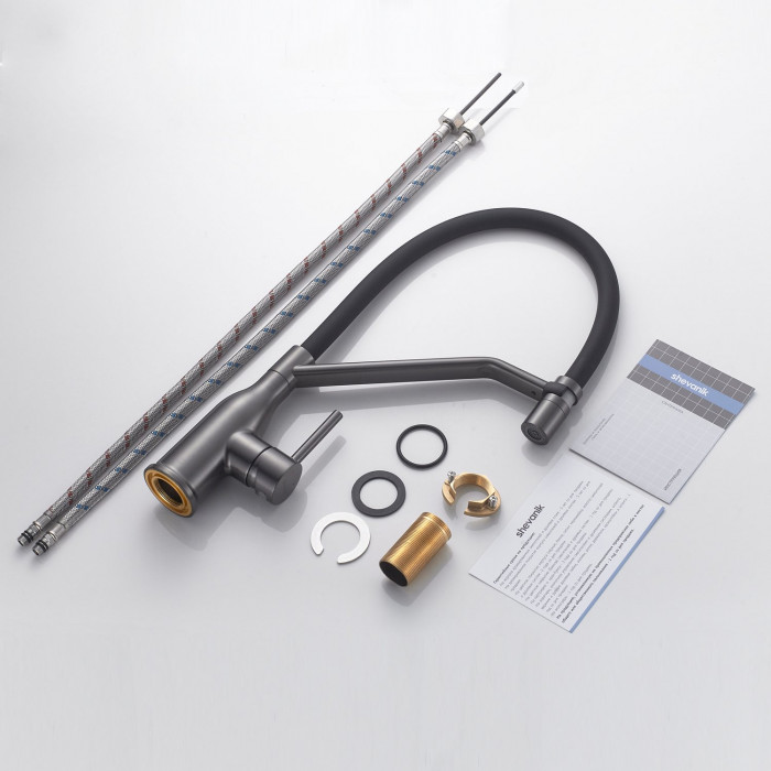 Смеситель для кухни с гибким изливом Shevanik S343T-3, оружейная сталь
