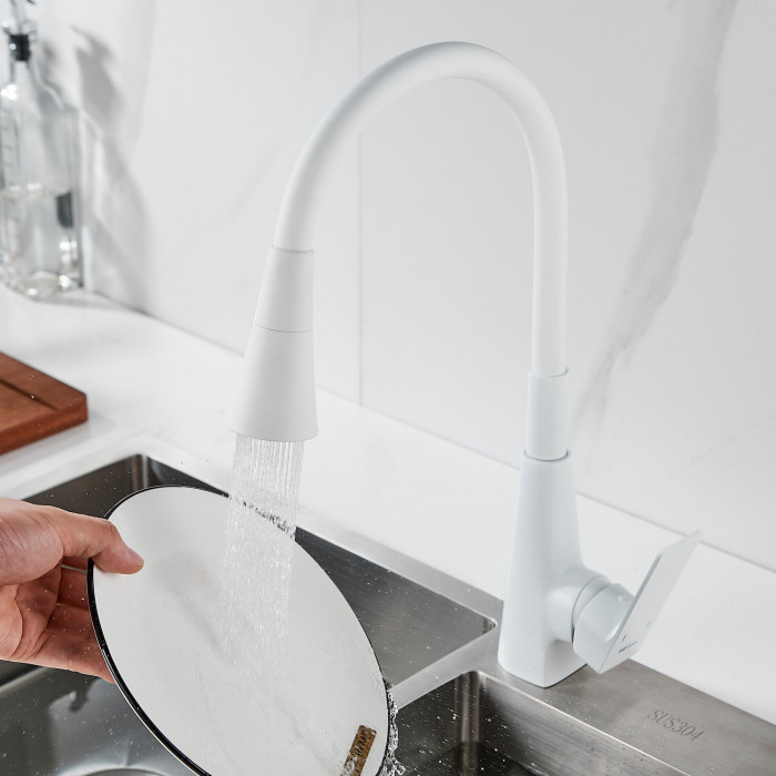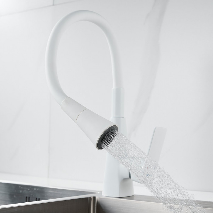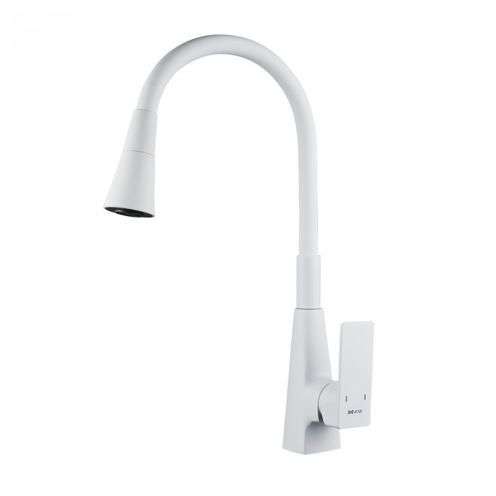 Смеситель для кухни с гибким изливом Shevanik S543C-1, белый