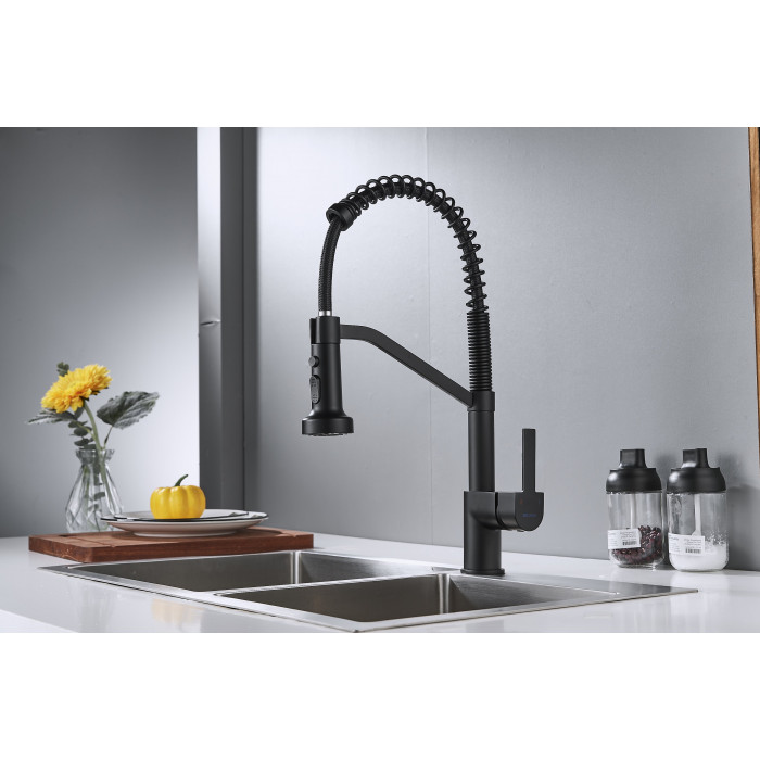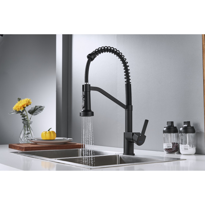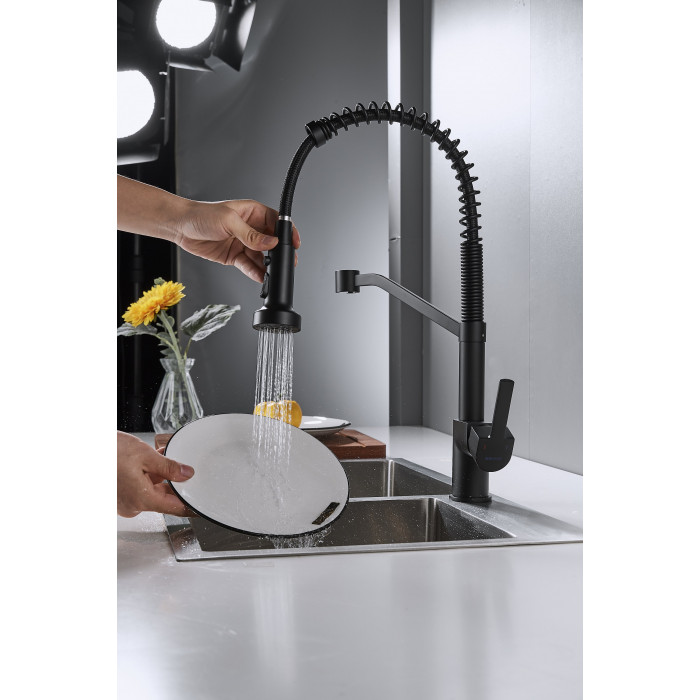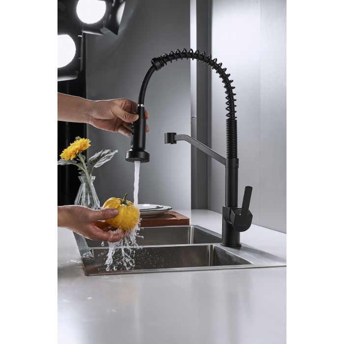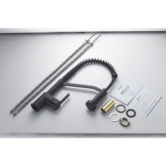 Смеситель для кухни с гибким изливом Shevanik S963H, черный