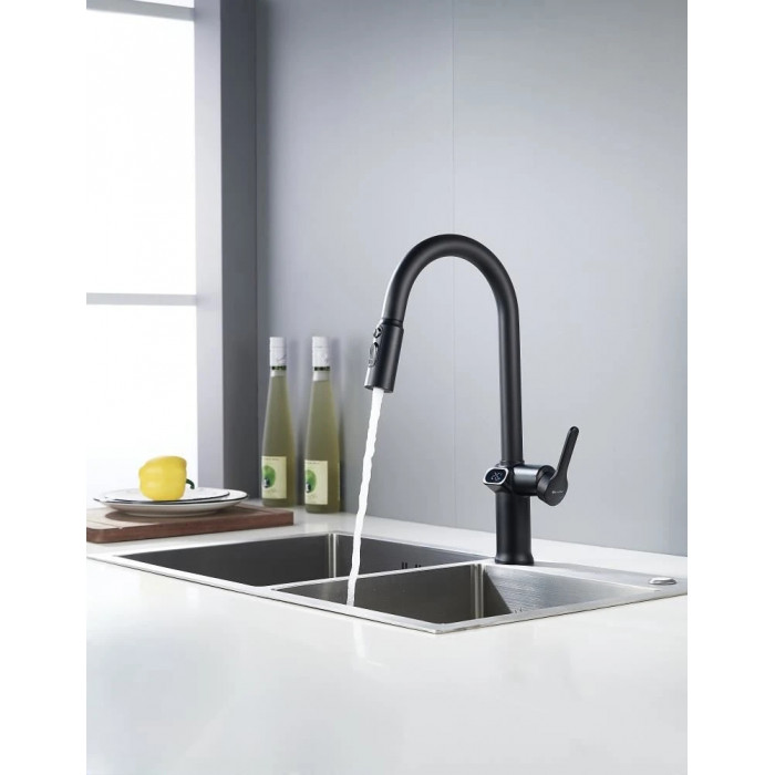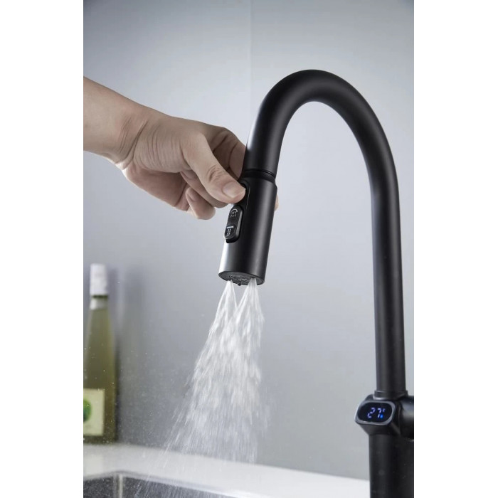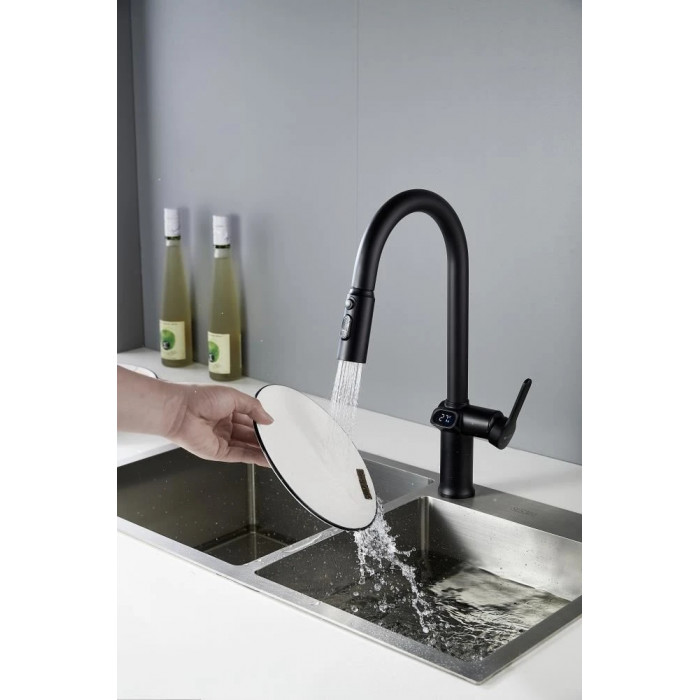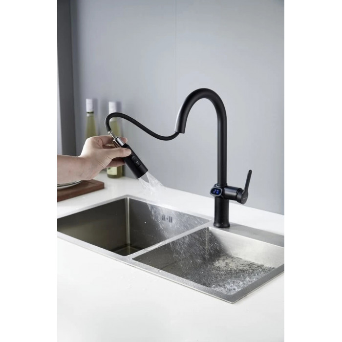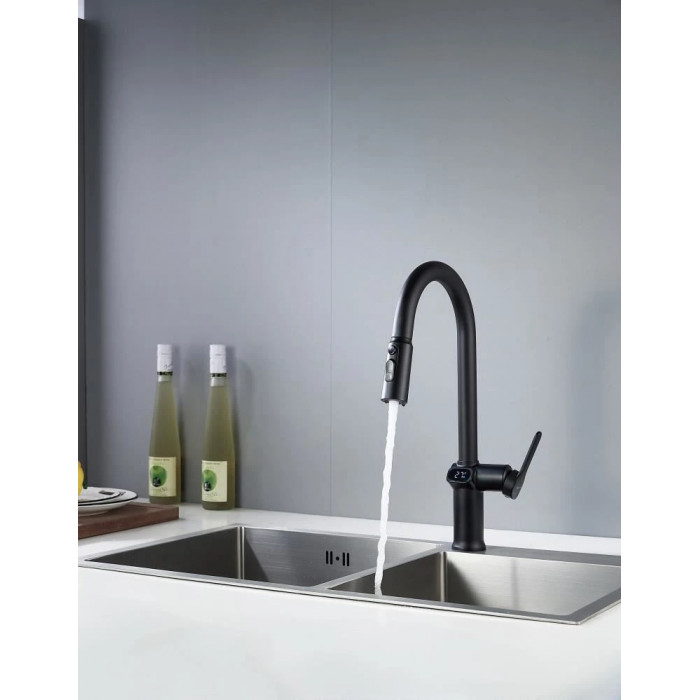 Смеситель для кухни с индикатором температуры Knotlor KN-100/BL, черный