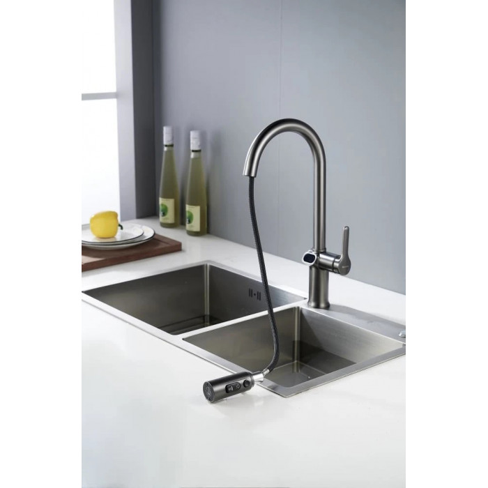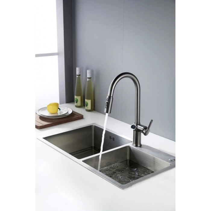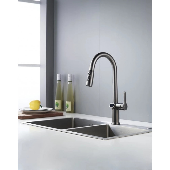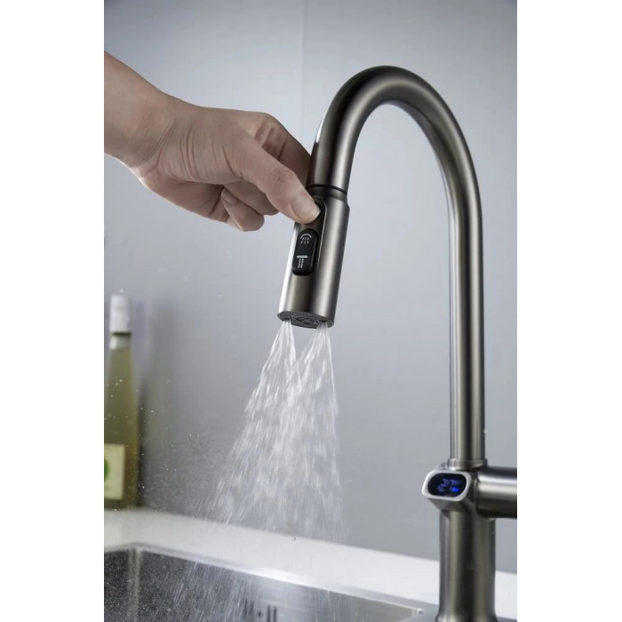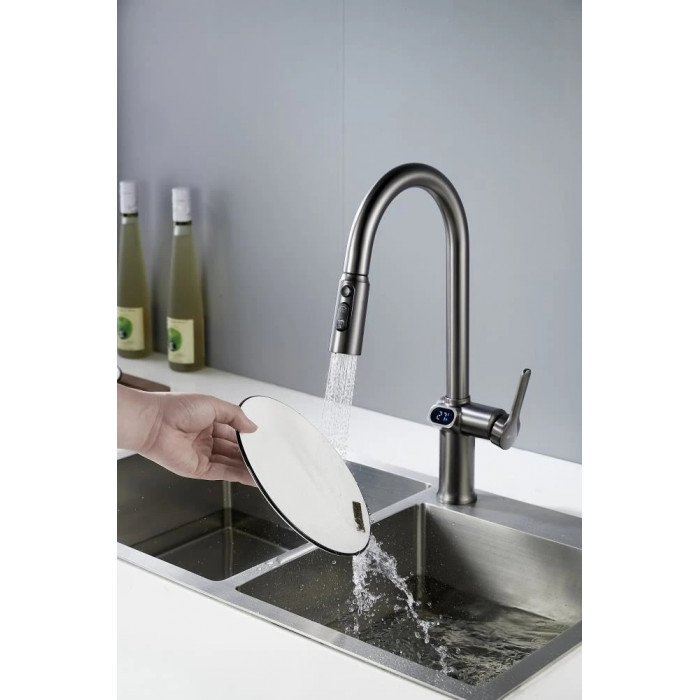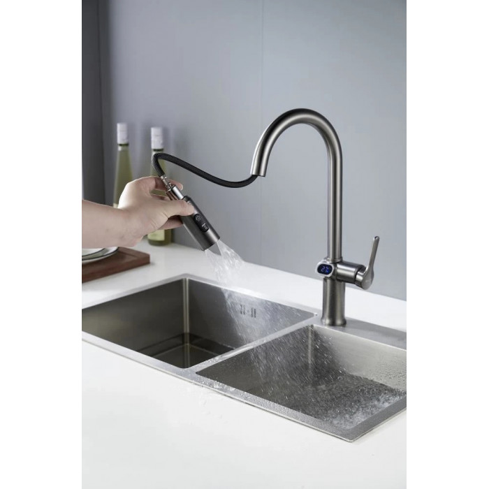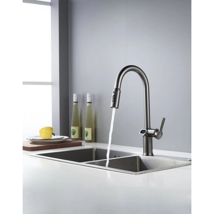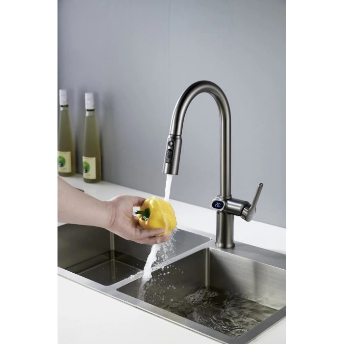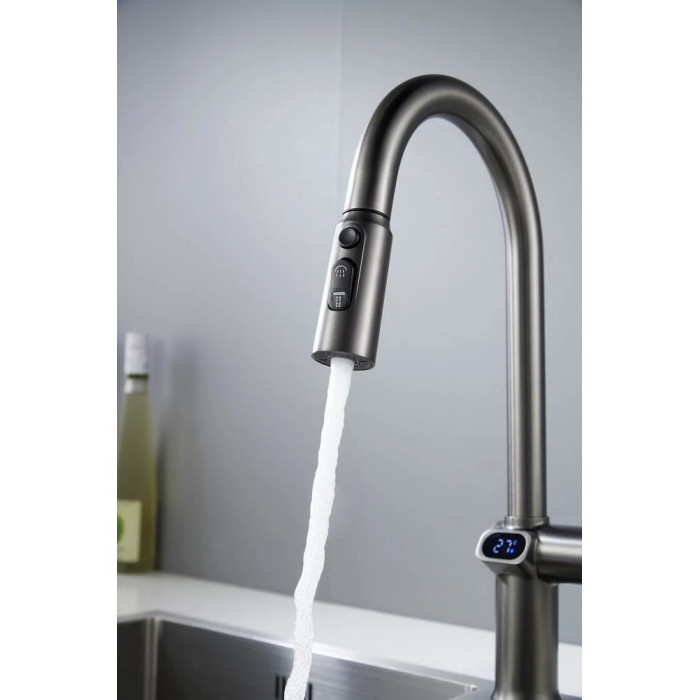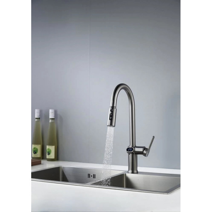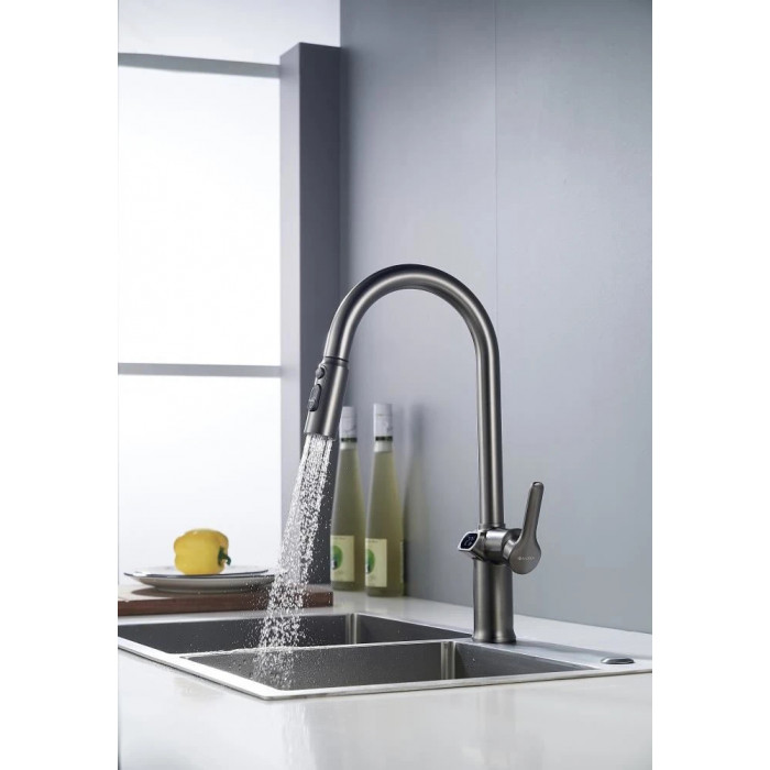 Смеситель для кухни с индикатором температуры Knotlor KN-100/GM, вороненая сталь