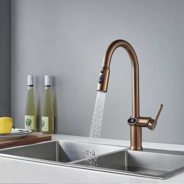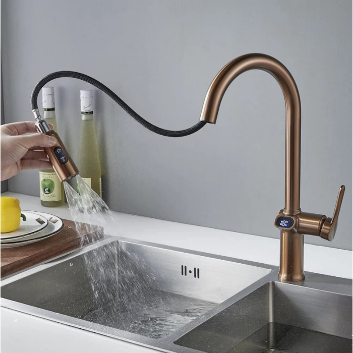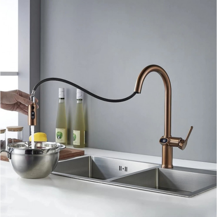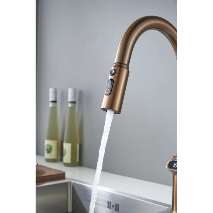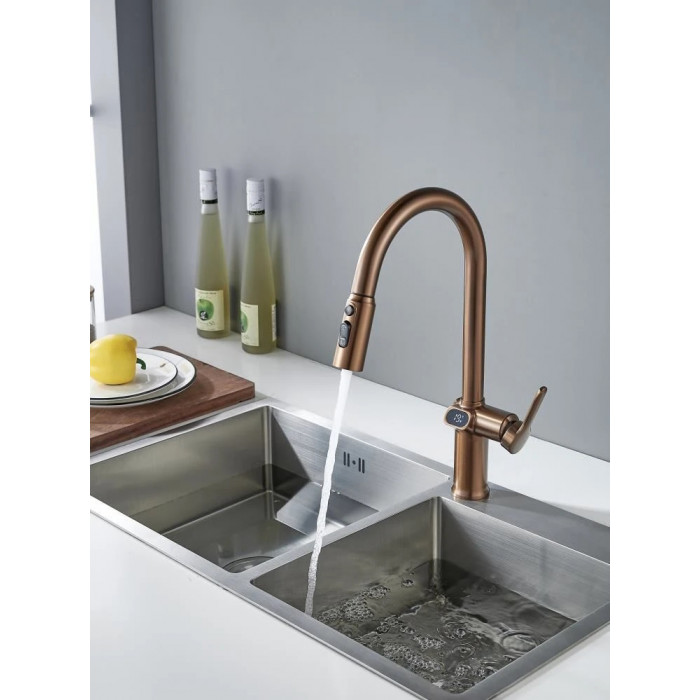 Смеситель для кухни с индикатором температуры Knotlor KN-100/RB, бронза