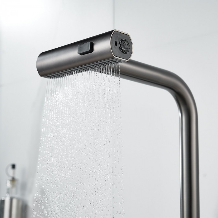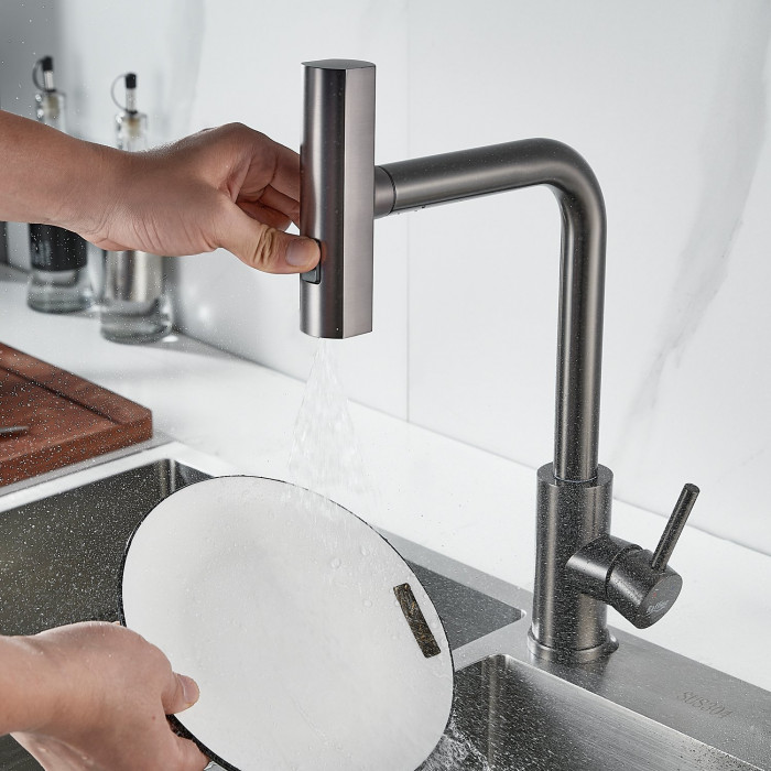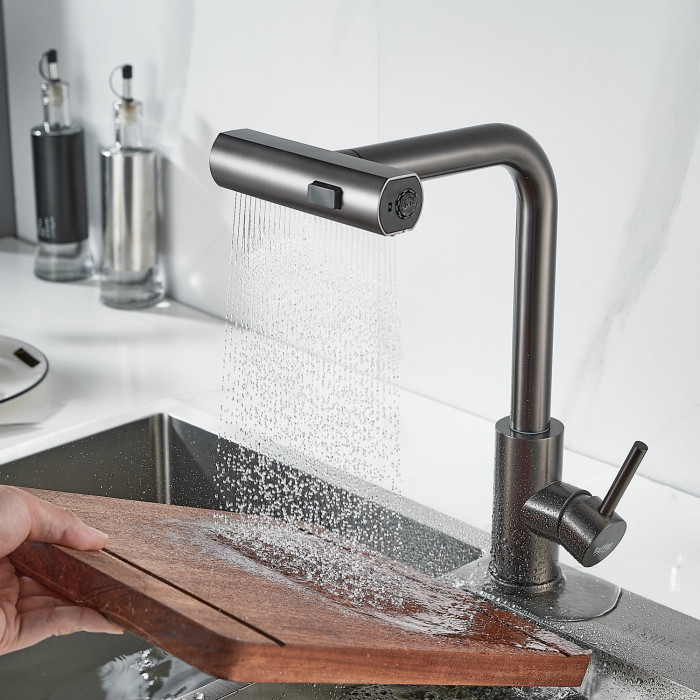 Смеситель для кухни с мультифункциональным изливом Raffine F203T, оружейная сталь