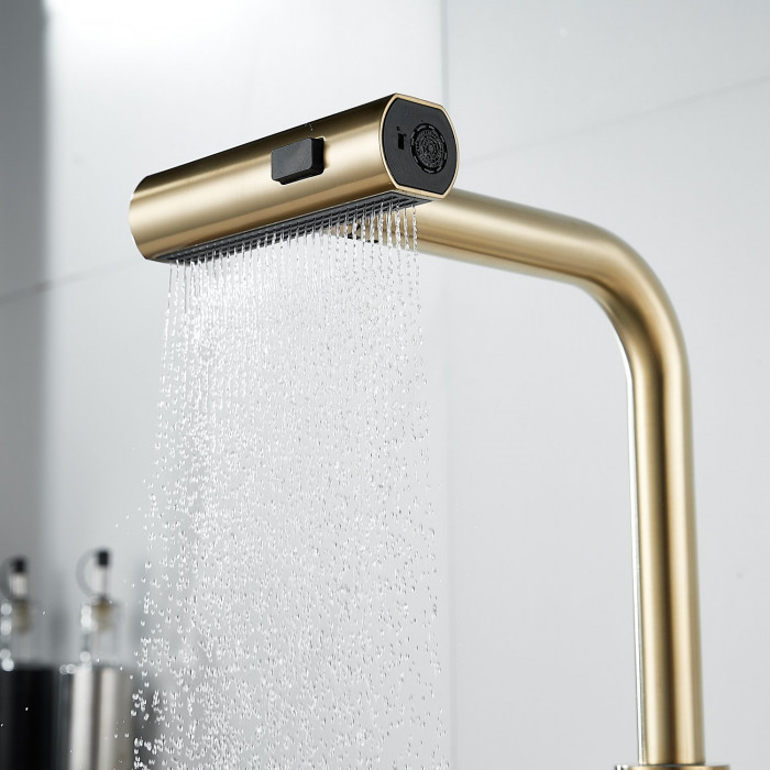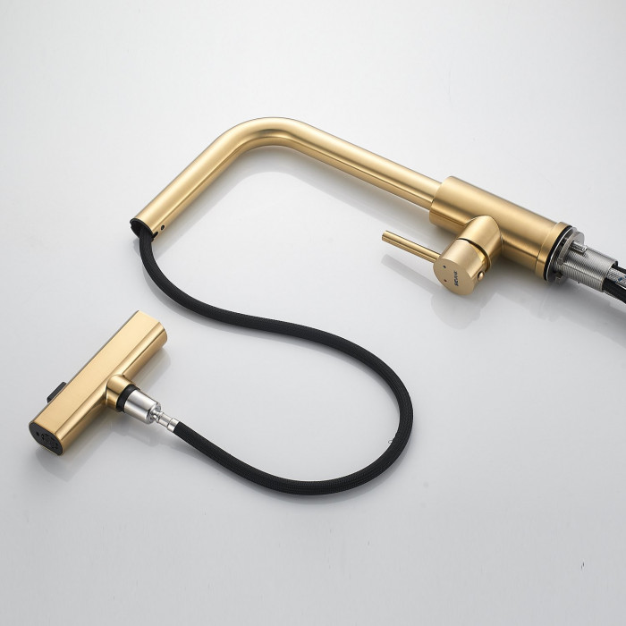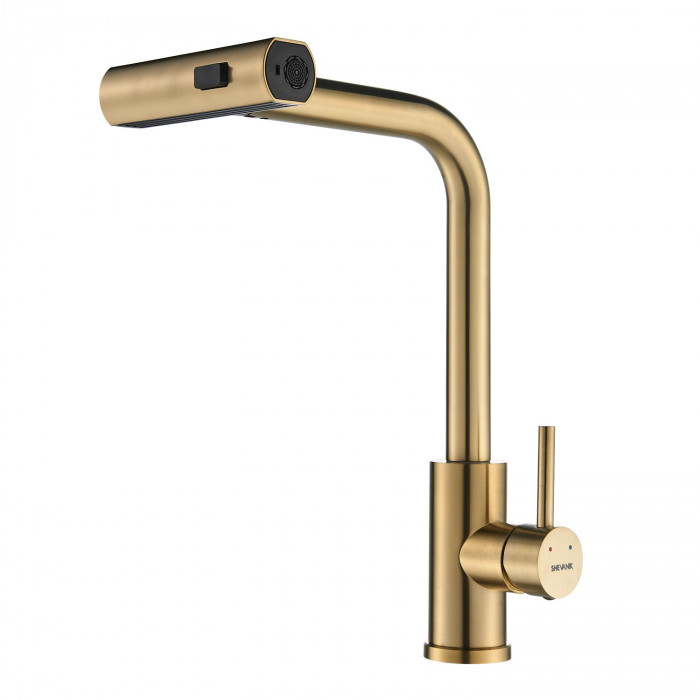 Смеситель для кухни с мультифункциональным изливом Shevanik S263G, золотой сатин