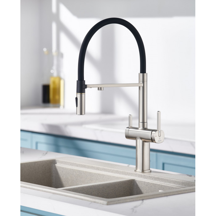Смеситель для кухни с подключением фильтра для воды Rose R358L, сатин
