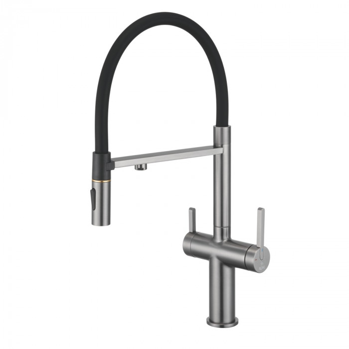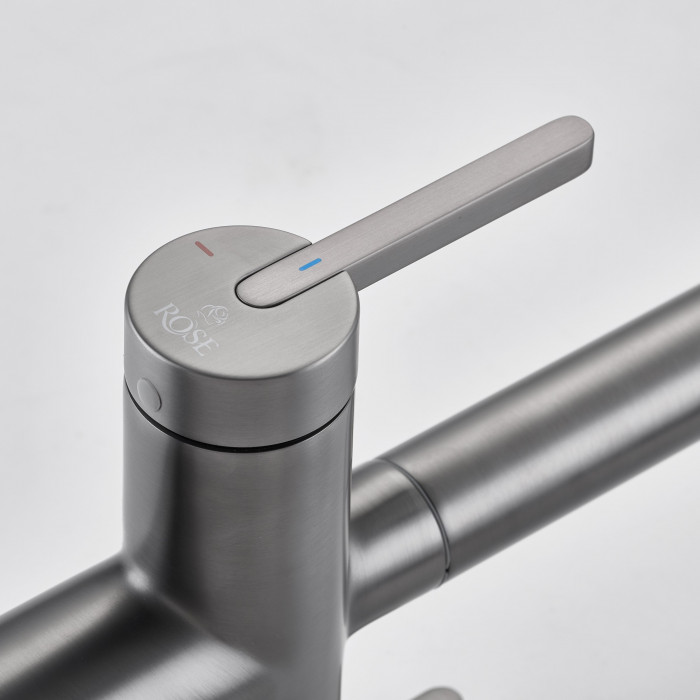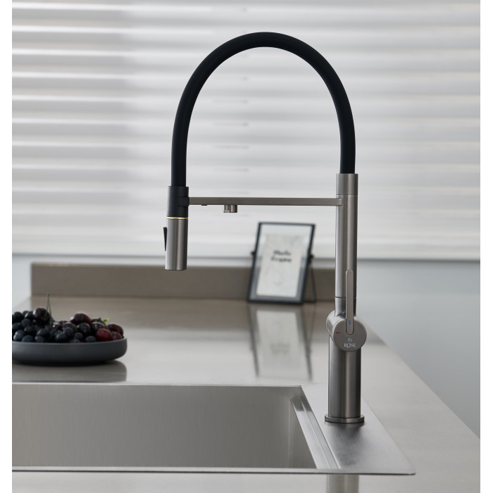 Смеситель для кухни с подключением фильтра для воды Rose R458T, оружейная сталь