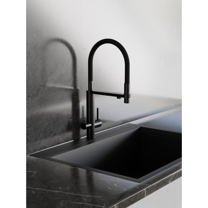 Выглядит стильно, матовый черный не маркий. Ход рычага плавный, напор регулируется точно. Из минусов - тяжёлый, пришлось аккуратно подтягивать крепеж.