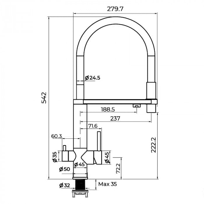 Размер чаши мойки впечатлил, очень удобно, исполнение отличное,цвет алюметаллик подошёл нам идеально, заказала такой же смеситель