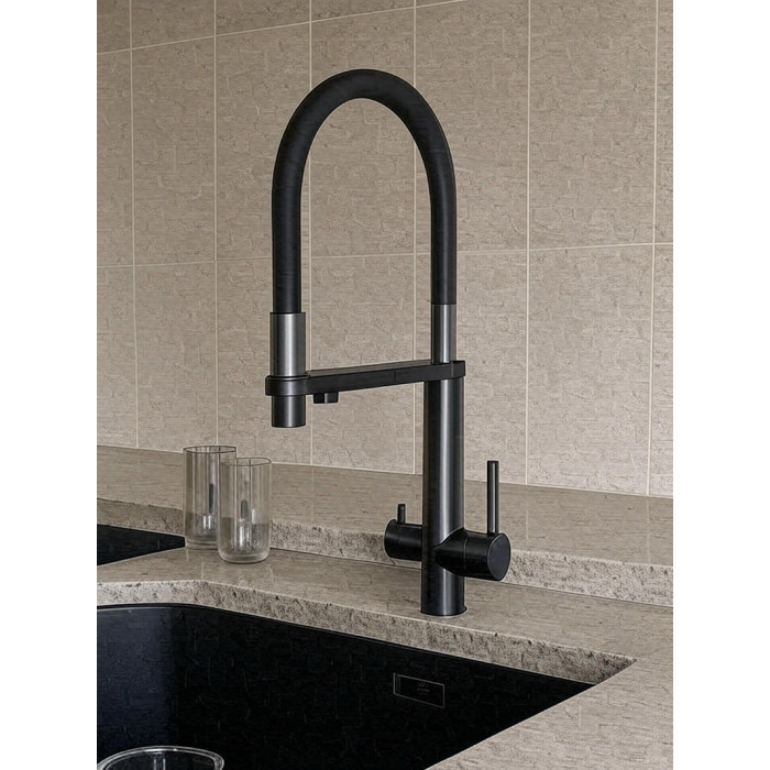 Смеситель для кухни с подключением фильтра Knotlor SS-15/GM, вороненая сталь