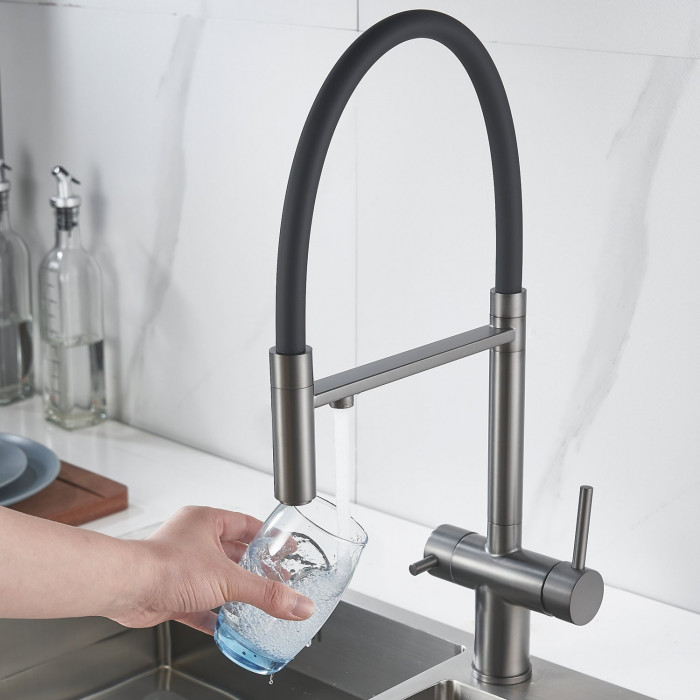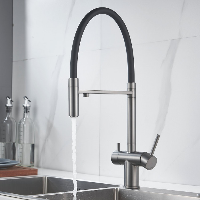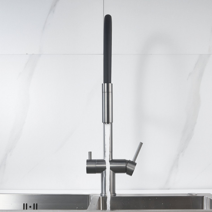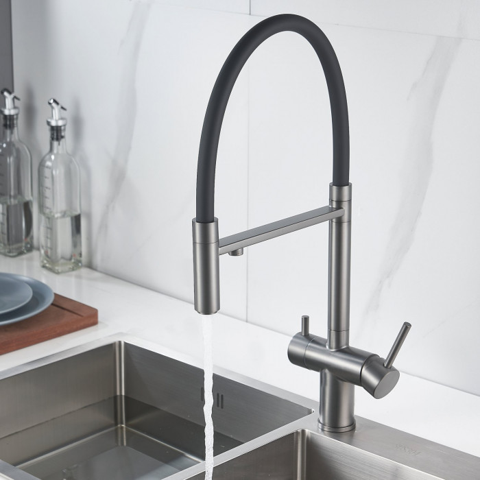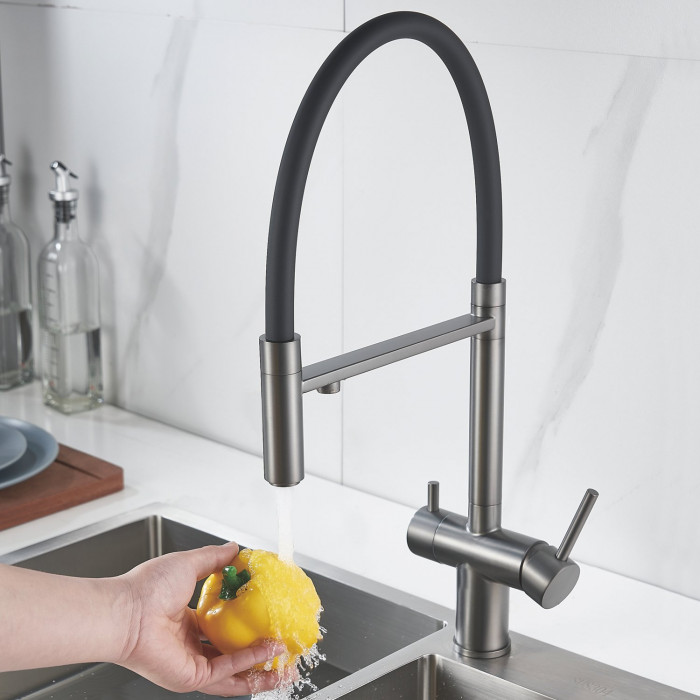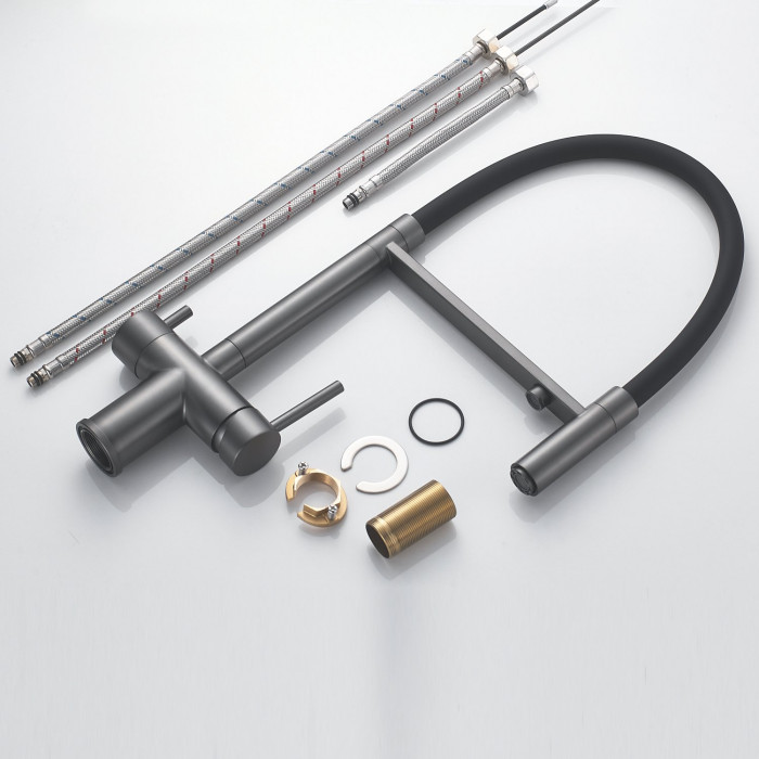 Смеситель для кухни с подключением фильтра Shevanik S178T, оружейная сталь