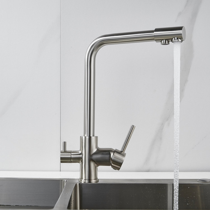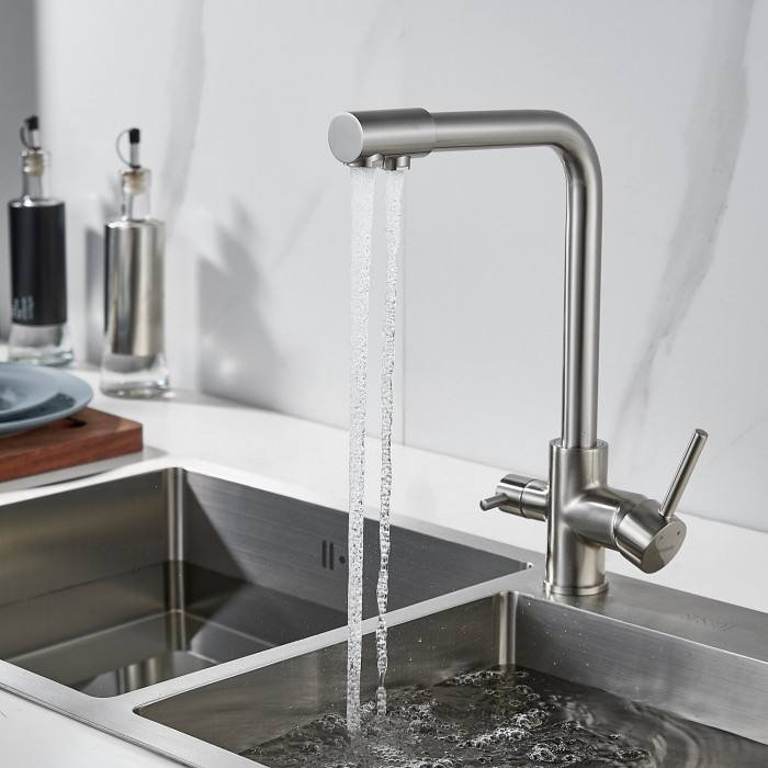 Смеситель для кухни с подключением фильтра Shevanik S328L, сатин