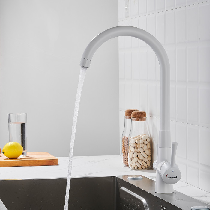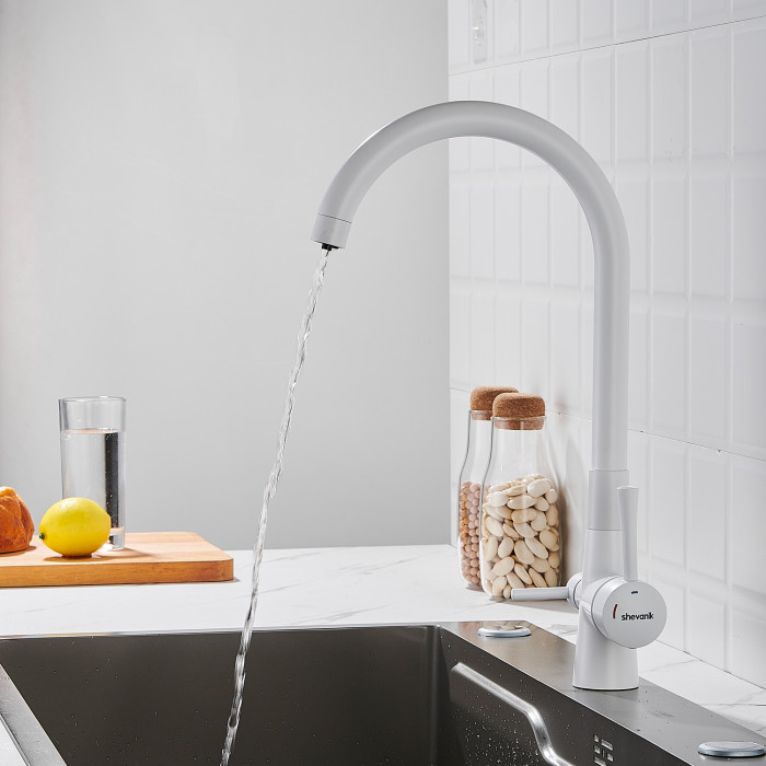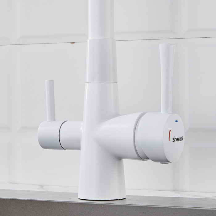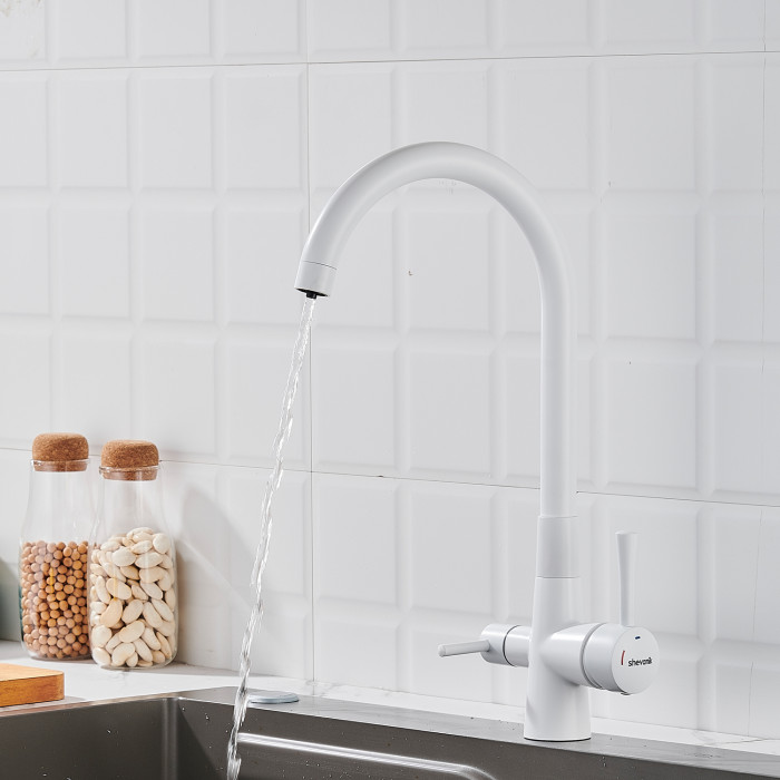 Смеситель для кухни с подключением фильтра Shevanik S428C, белый