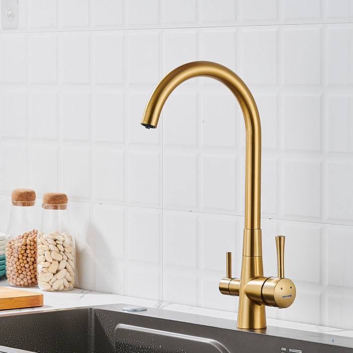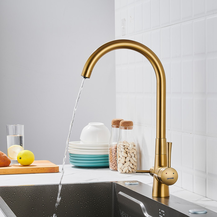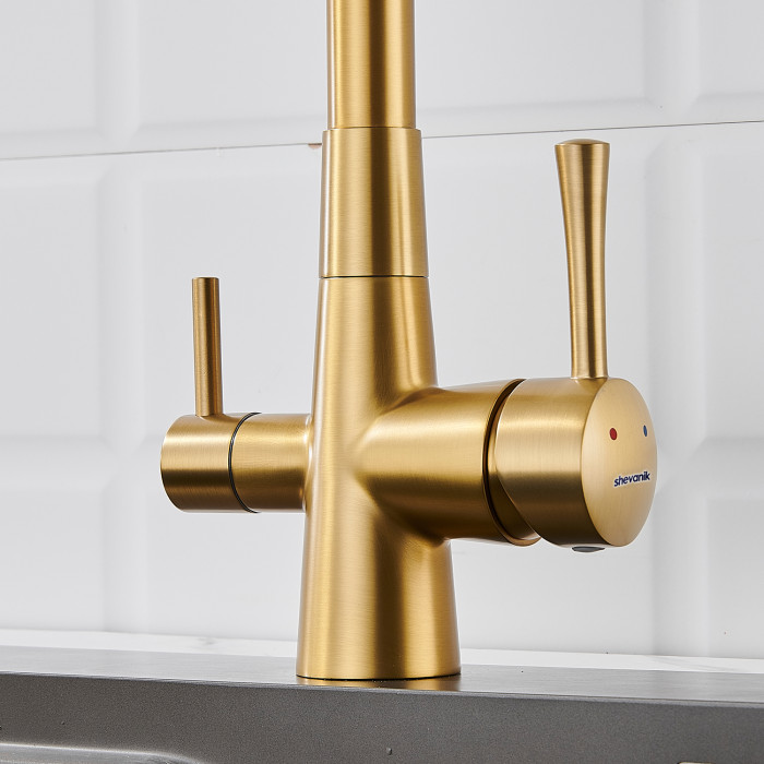 Смеситель для кухни с подключением фильтра Shevanik S428G, золотой сатин