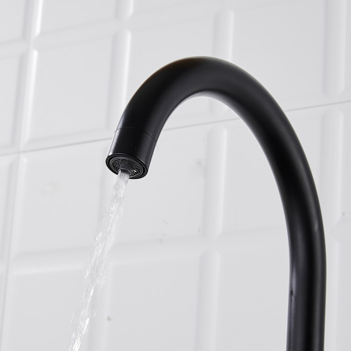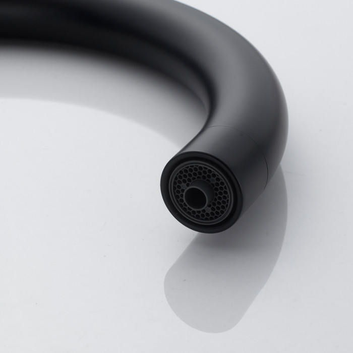Выглядит стильно, матовый черный не маркий. Ход рычага плавный, напор регулируется точно. Из минусов - тяжёлый, пришлось аккуратно подтягивать крепеж.
