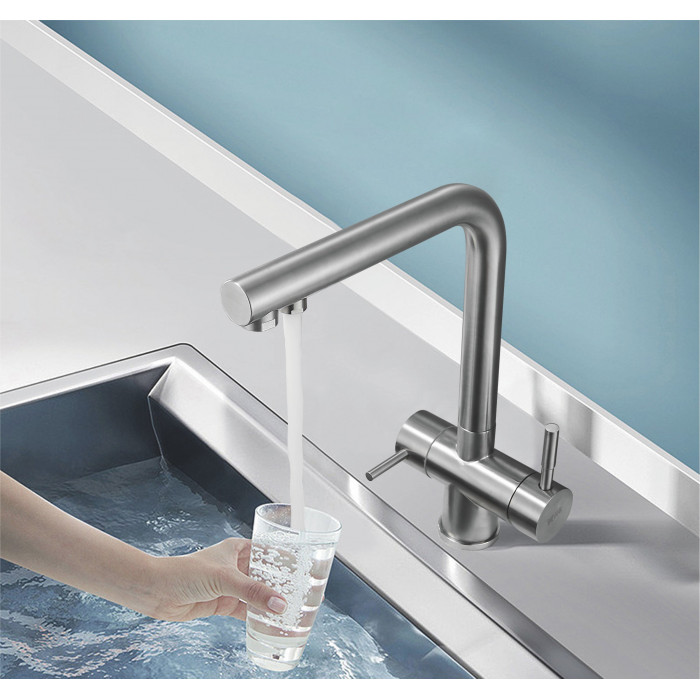 Смеситель для кухни с подключением фильтра Shevanik S468B, сатин