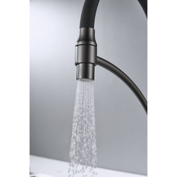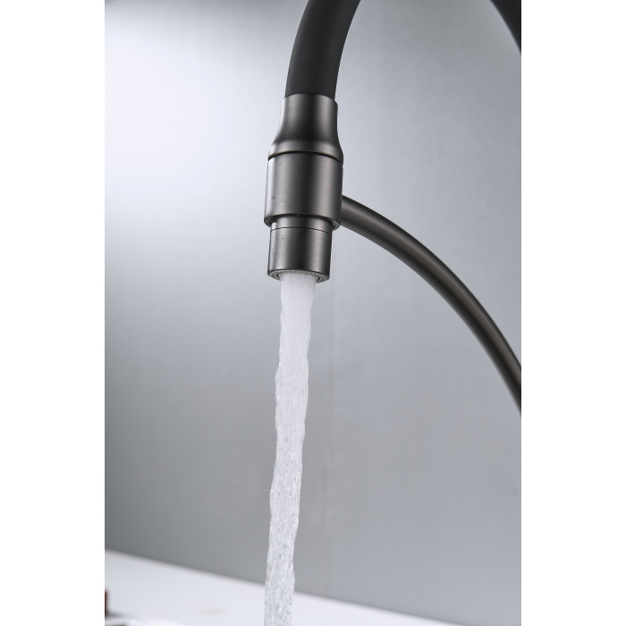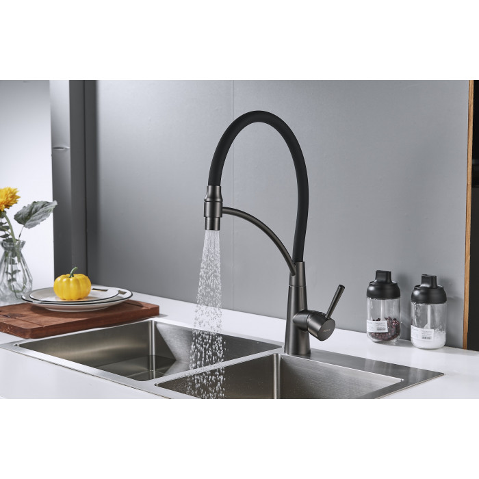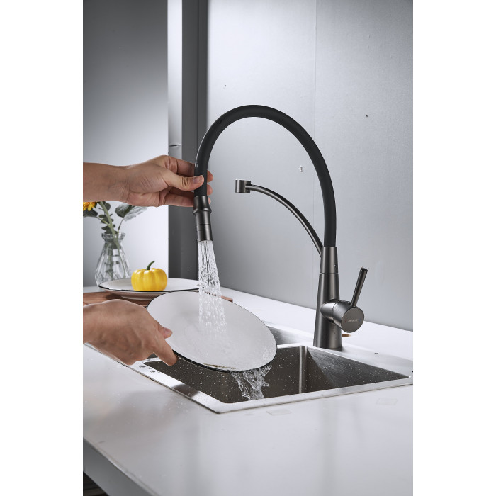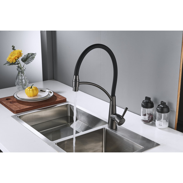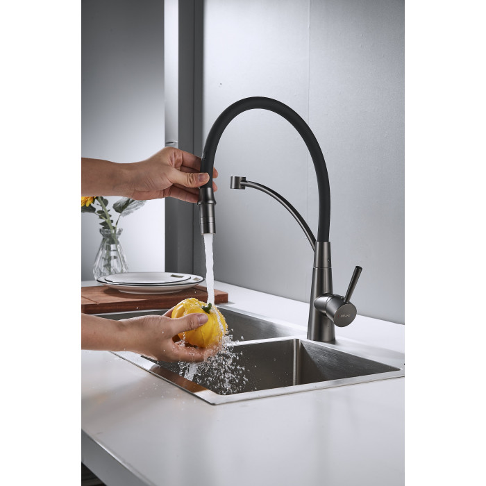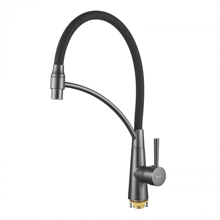 Смеситель для кухни с подключением фильтра Shevanik S743T-3, оружейная сталь/черный