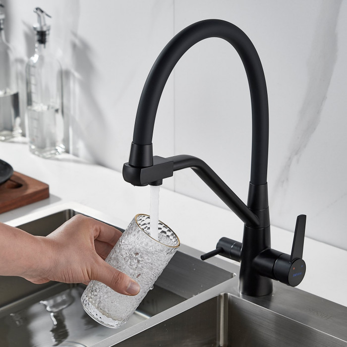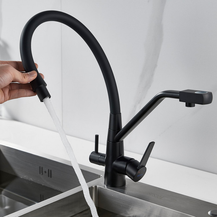 Смеситель для кухни с подключением фильтра Shevanik S968H, черный