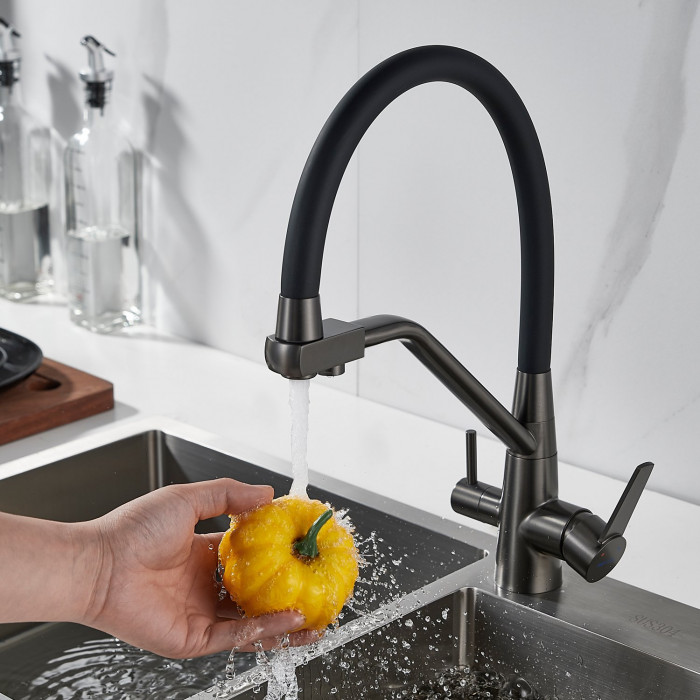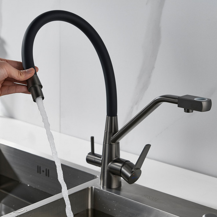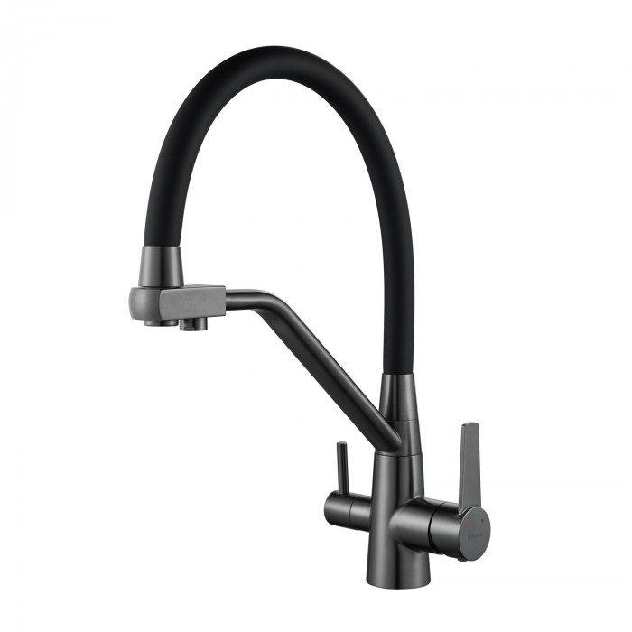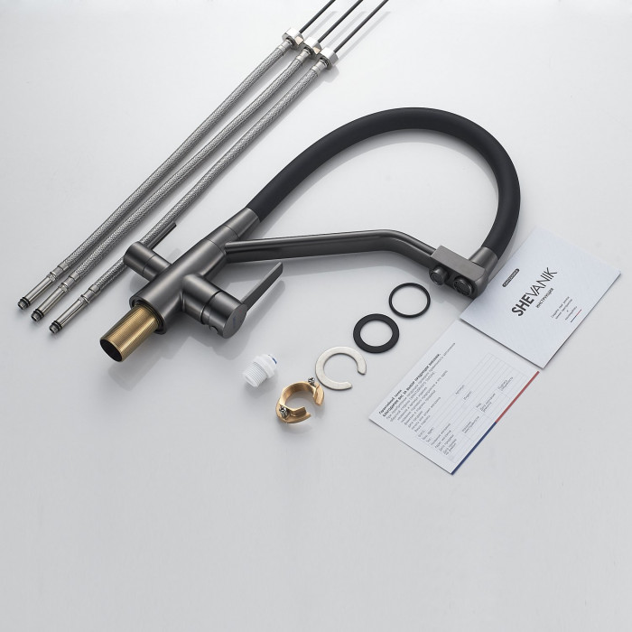 Смеситель для кухни с подключением фильтра Shevanik S968T, оружейная сталь