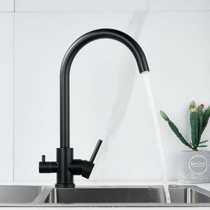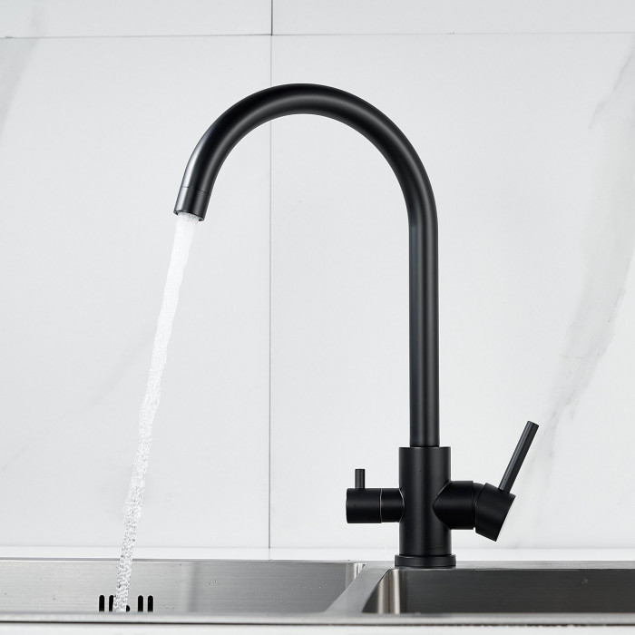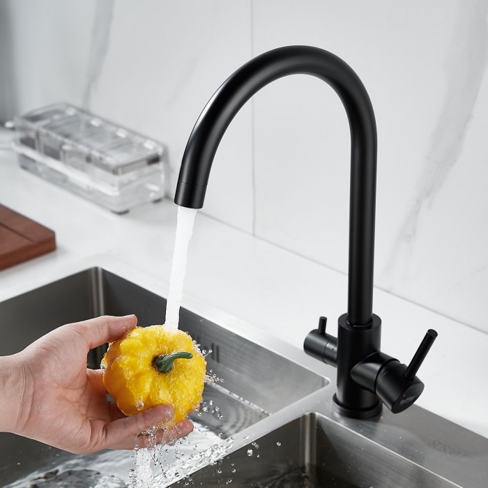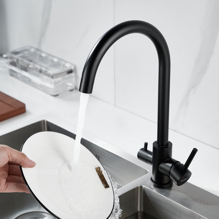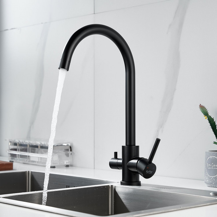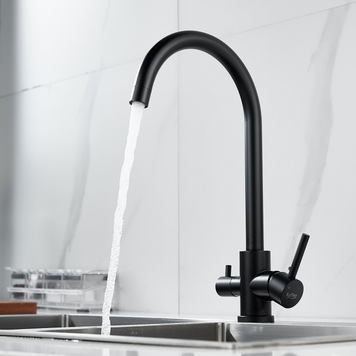 Смеситель для кухни с подключением фильтра воды Raffine F108H, черный