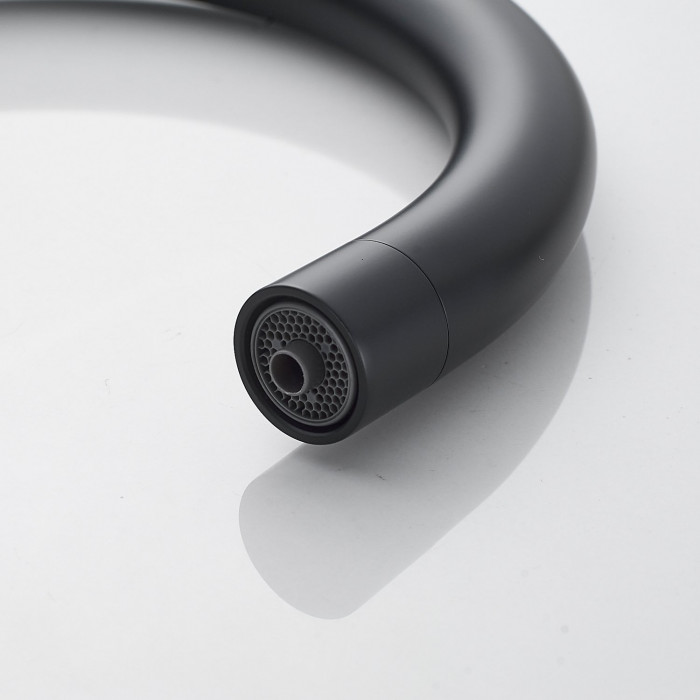 Выглядит стильно, матовый черный не маркий. Ход рычага плавный, напор регулируется точно. Из минусов - тяжёлый, пришлось аккуратно подтягивать крепеж.