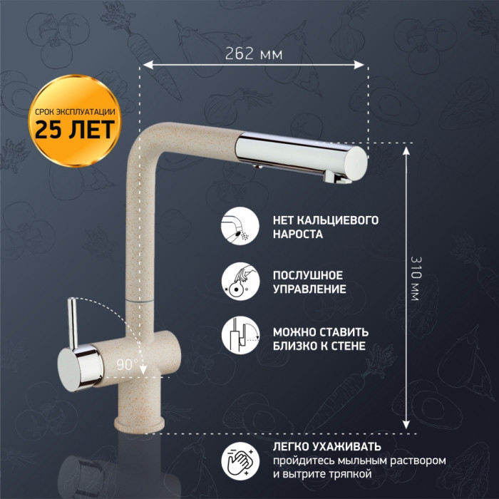 Смеситель для кухни с выдвижной лейкой, PAINI Cox, GRANITE AVENA HD94566CR1KM смеситель для кухни Paini Италия
