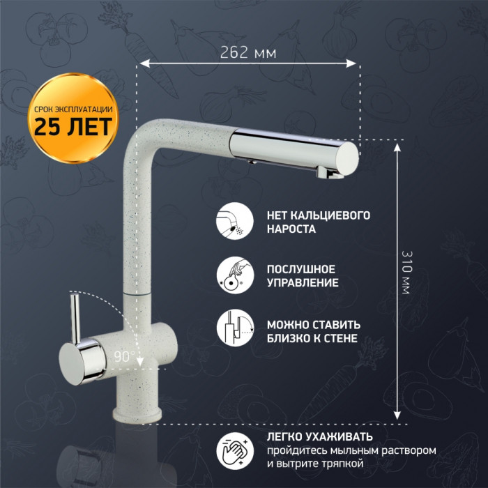 Смеситель для кухни с выдвижной лейкой, PAINI Cox, ULTRAWHITE HD90566CR1KM