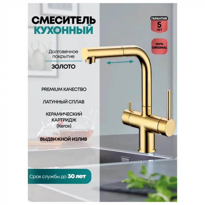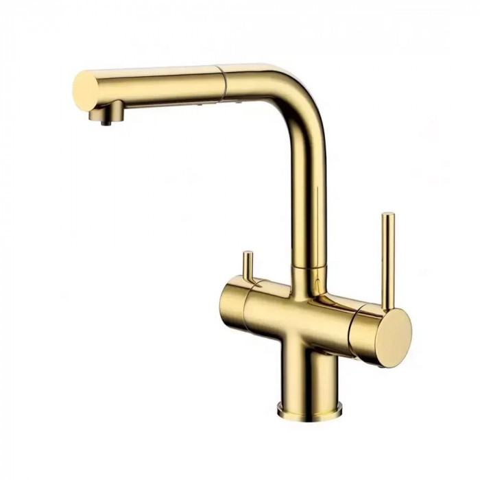 Смеситель для кухни с выдвижным изливом Grocenberg GB4097GO, золото Смеситель для кухни под фильтр с выдвижным изливом Grocenberg GB4097 Золото глянец