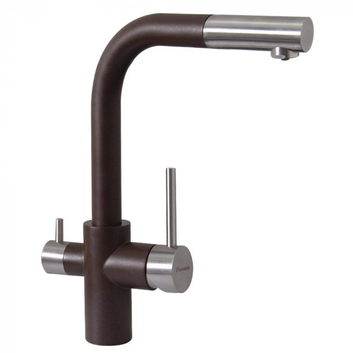 Смеситель для кухни с выдвижным изливом и подключением фильтра Florentina КРИСТАЛЛ 333.32H.2123.206, брауни